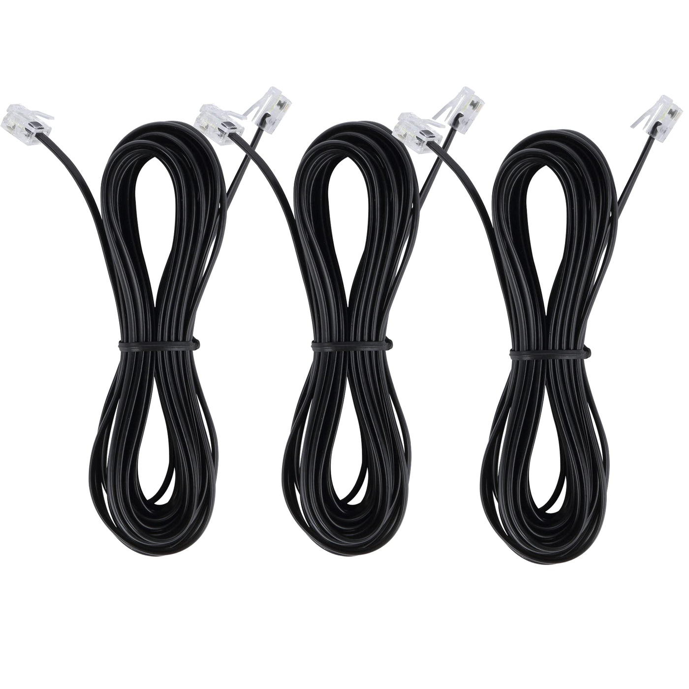 Telephone Landline Extension Cord Cable Cord With Standard Rj 11 6P4C Plug (10Ft 3Pack, Black)