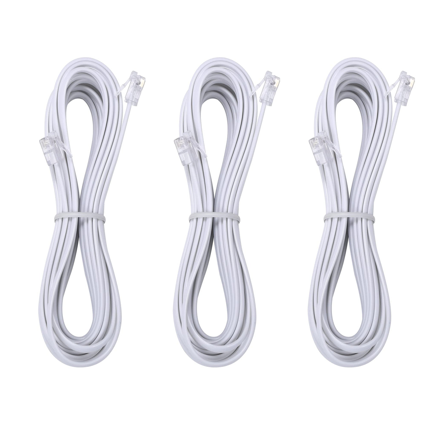 Telephone Landline Extension Cord Cable Cord With Standard Rj 11 6P4C Plug (10Ft 3Pack, White)