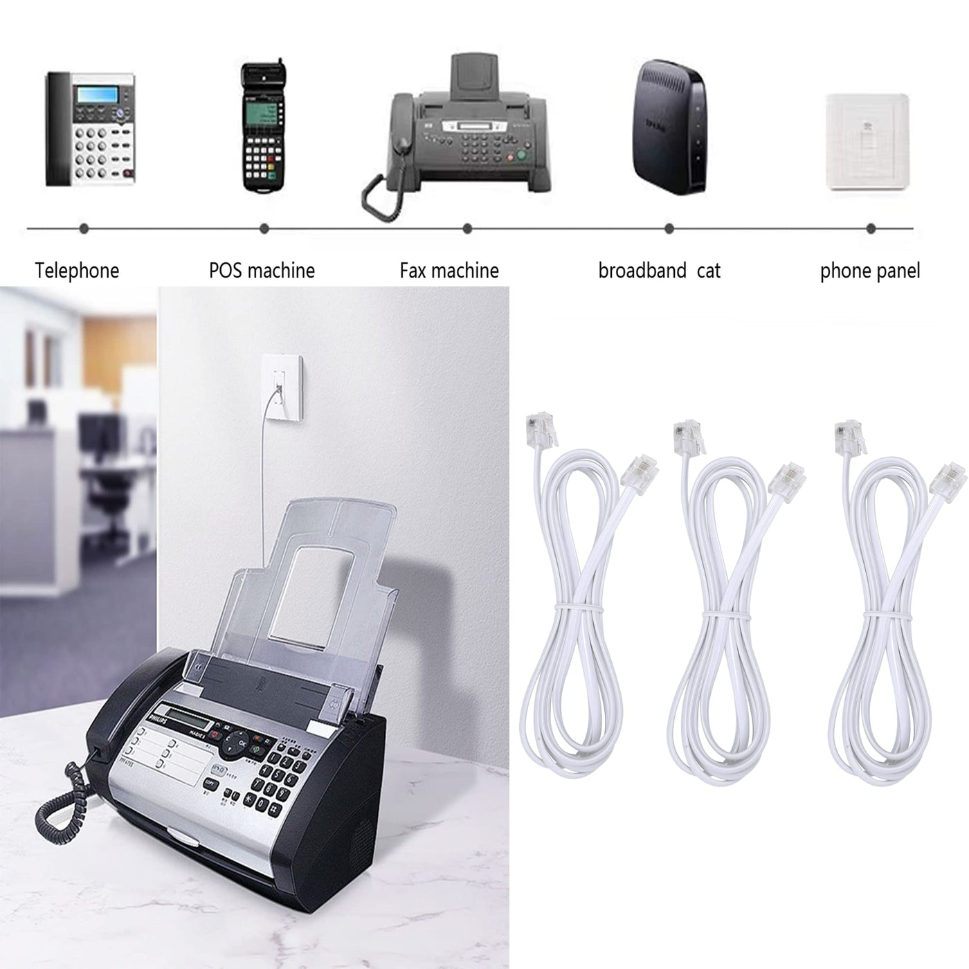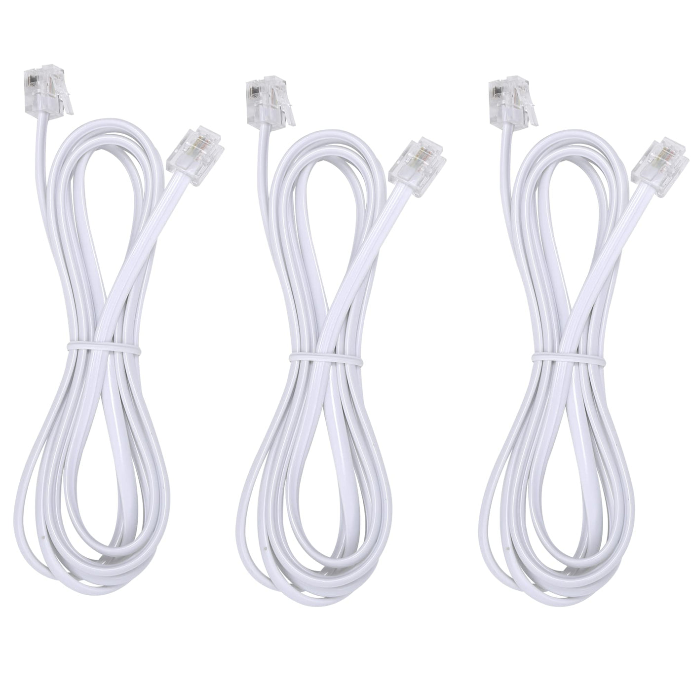Telephone Landline Extension Cord Cable Cord With Standard Rj 11 6P4C Plug (3Ft 3Pack, White)