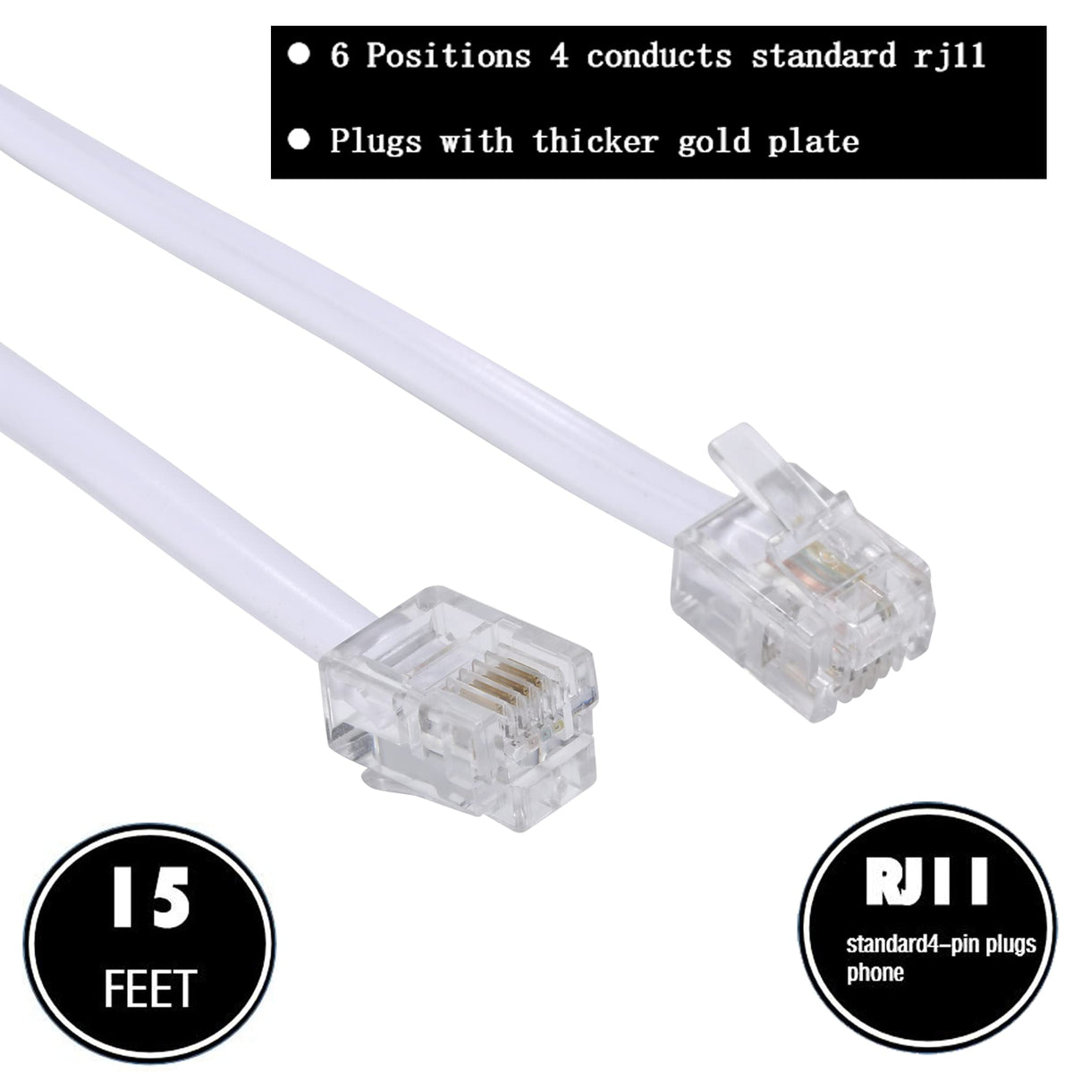 Color:6P4C To 6P4C(15Ft White) * Conductor: Copper * Wire Diameter: 0.4 Copper(Single) * Size: 4.65 Meters (Plus Or Minus Two Percent) * Line Core: 4 Root * Insulation: Hdpe * Wire Shield: Pvc Product Features: Single Insulated Wire According To The Different Pitch Twisted Pair, And With Specified Color Combinations To Identify Line, Reduce The Mutual Interference Between The Clues Crosstalk, Power Consumption Is Small. Scope Of Application: Telecommunication Engineering Wiring, Links Between Indoor Telephone Communication Cable System Wiring, Voice Communication System Between The Main Line, Program-Controlled Switches, Phone, Fax And Digital Television.