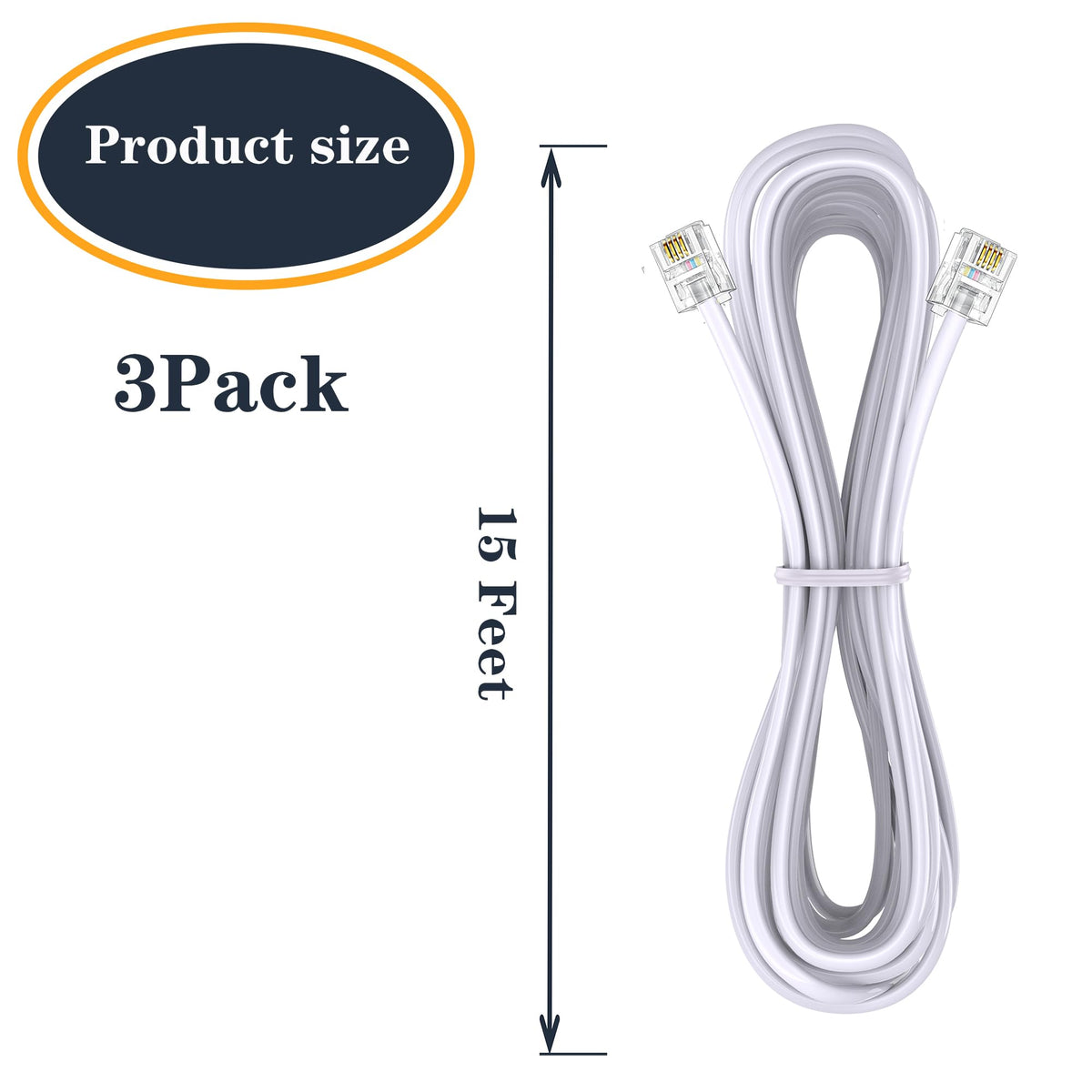 Color:White Telephone Line Length: 15Ft | Colour: White Product Features: Thicker Copper Cores In Wires Up To 26 Awg, Which Is Much Better Than Ordinary Copper-Clad-Steel Or Thin Copper Cores Telephone Cable, And Contacts Of Plugs Are Coated With Thicker Gold Plate Than Normal Ones On Market. Product Specs: Material Of Jacket: Pvc Material Of Core: Pure Copper Up To 26 Awg Length:15Ft Plug: Standard Rj11 Plug (6 Position 4 Conducts) At Both Ends. Scope Of Application: Landline Telephones, Fax Machines, Modems To A Standard Telephone Wall Jack, Answering Machines, Etc.