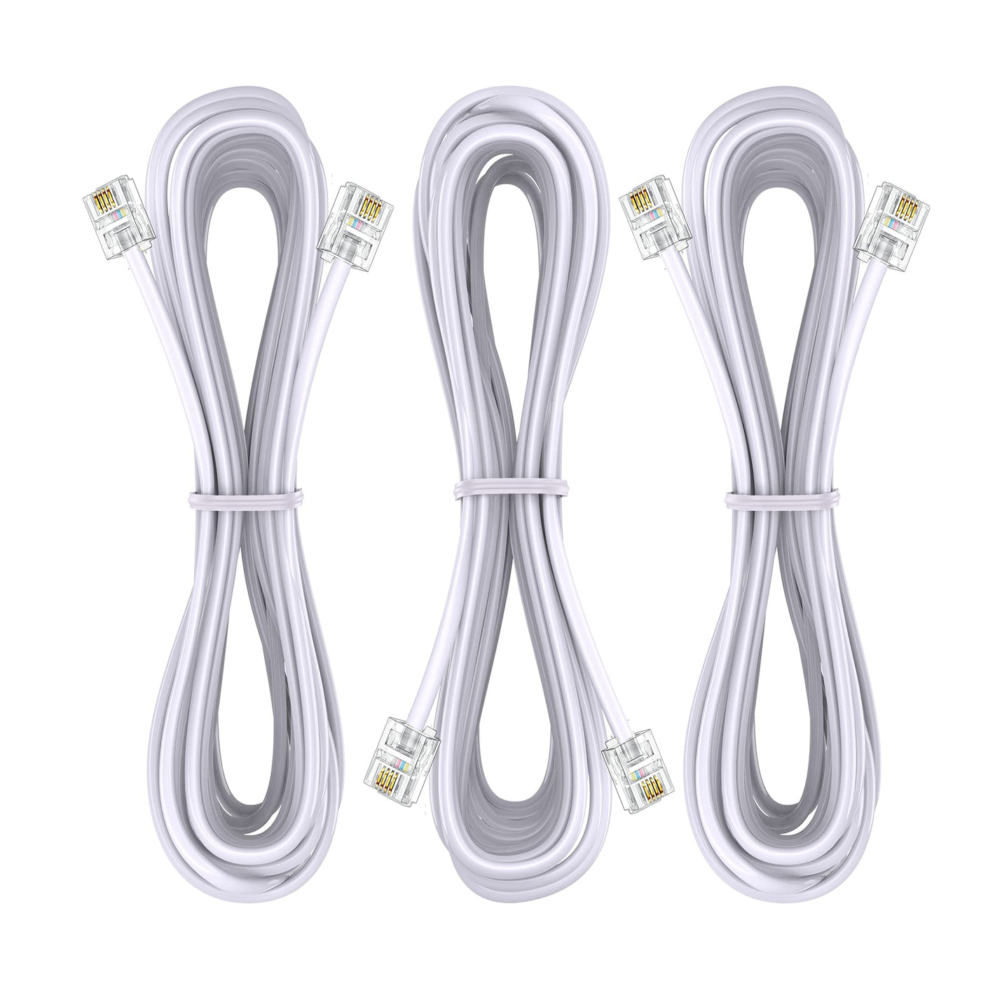 Ubramac 3Pack Phone Telephone Extension Cord 15Ft Cable Line With Standard Rj11 6P4C Plugs For Landline Phone And Fax (15F, Whit