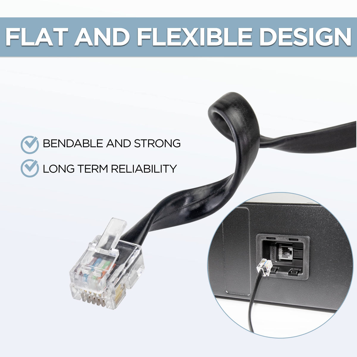 Premium Quality, Heavy-Duty Pos Cash Drawer Cableany Point Of Sale Cash Drawer System Cannot Function Smoothly Without A Compatible And Reliable Data Cable. Volcora Rj11 / Rj12 Cable Is The Perfect Solution To Make Your System Work As One.The Rj11 / Rj12 Cash Drawer Cable Provides Uncompromised Faster Data Speed For Seamless And Stable Connection And Long-Term Reliability For Every Transaction You Make. It Ensures No Interference And Prpvides Error-Free Transmission Even After Years Of Use. This Rj12 / Rj11 Crossover Cable Is Designed To Be Bendable, And Strong, Which Is Ideal For Small Or Tight Spaces To Reduce Cable Clutter. The Pvc Jacket Encasing Of These Modem Cables Are Versatile And Have Excellent Insulation.These Cables Are Specially Designed For Volcora Cash Drawers. However, The Cables Can Also Be Used For Voice And Data Applications Such As Telephones, Fax And Answering Machines, Printers, And Other Custom Applications In Homes, Offices, And Businesses.Product Features: Rj11 / Rj12 Cable Cable Length: 5-Ft Color: Standard Black High-Impact Strength, Clear Modular Connectors On Both Ends Quick-Connect, Firm Lock 6 Pins Cable With Stranded, Insulated Copper Conductors Flat And Flexible Jacket Encasingour Promise:Volcora Vouches For The Quality Of Its Products. If For Any Reason You Are Not Satisfied With Our Offer, Just Let Us Know And We Will Make Sure That You Will Walk Away As A Happy Customer. Moreover, You Are Covered With Our 100% Money Back Guarantee.Click ''Add To Cart'' Now To Get Your Rj11/ / Rj12 Cash Drawer Cables Hassle-Free!