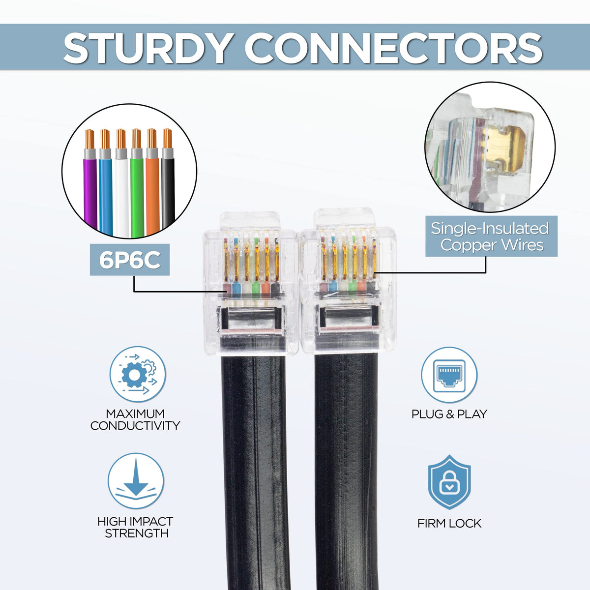 Q: How does the length of the cable affect its performance?A: The 5-foot length of the Volcora RJ11/RJ12 Data Cable provides ample reach for connecting devices while maintaining a strong and stable data transmission. Longer cables can sometimes lead to signal degradation, but this cable is designed to ensure high-speed performance over its length.