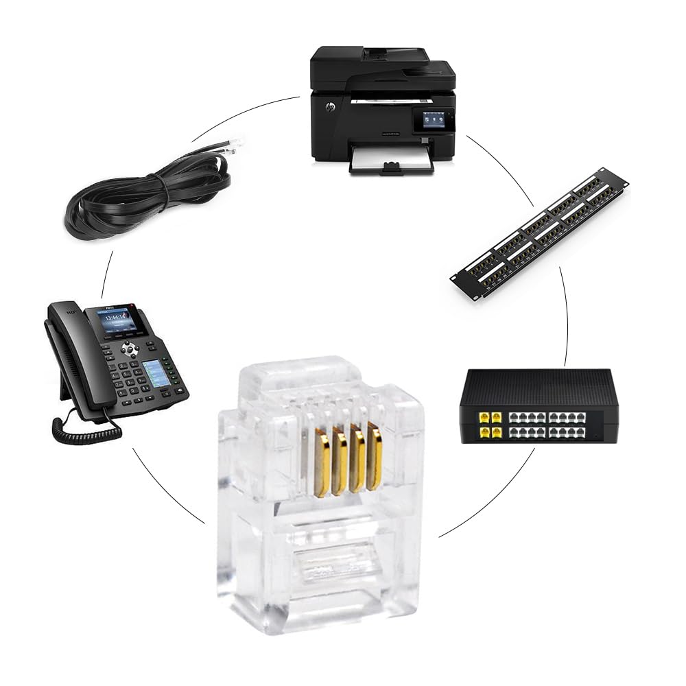 Xanham Rj11 6P4C Connectors(100 Pieces Pack) Telephone Line Cable Wire Male Plug, Av00205