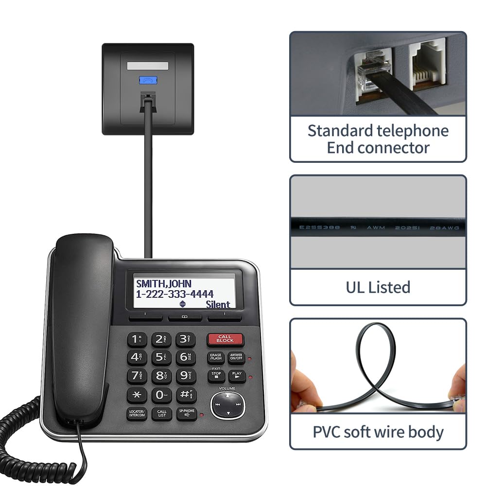 Xanham Rj12 Cable 6 Feet Telephone Line Cord With 6P6C Connector Landline Phone Wire For Both In Wall And Out Wall Using, Black,