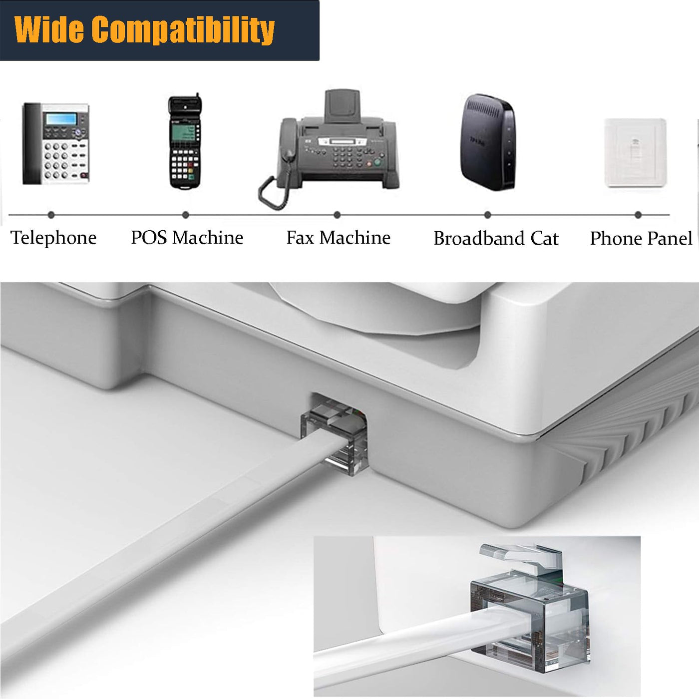 It Is A Ideal Phone Accessories, And Can Connect Your Phone With A Rj11 Connection To Another Rj11 Devices. Easy To Install For The Home, Hotel, Office And Other Telephone Systems. The Phone Wire Can Be Used With 2 Or 4 Wire Systems. The Cord Has A Variety Of Possible Uses, Such As Connecting Two Telephones Devices Together, Connecting A Telephone Device To A Wall Jack, Or As An Extension Cord. This Phone Extension Cord Allows You To Have Your Phone 25Ft Away Of Your Phone Jack And Not Having To Move Every Time You Need To Use Your Phone. Standard Phone Connectors On Both Ends, Plug And Play Ready For Fax Lines, Modems, Cordless Or Standard Phones. Specifications: Connectors: Rj11 Male To Rj11 Male Cables: 4 Conductors Color: White Cable Length: 25Ft