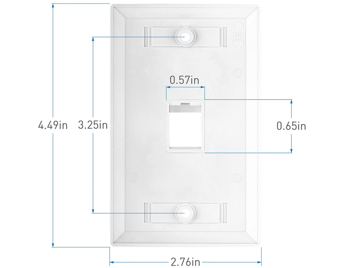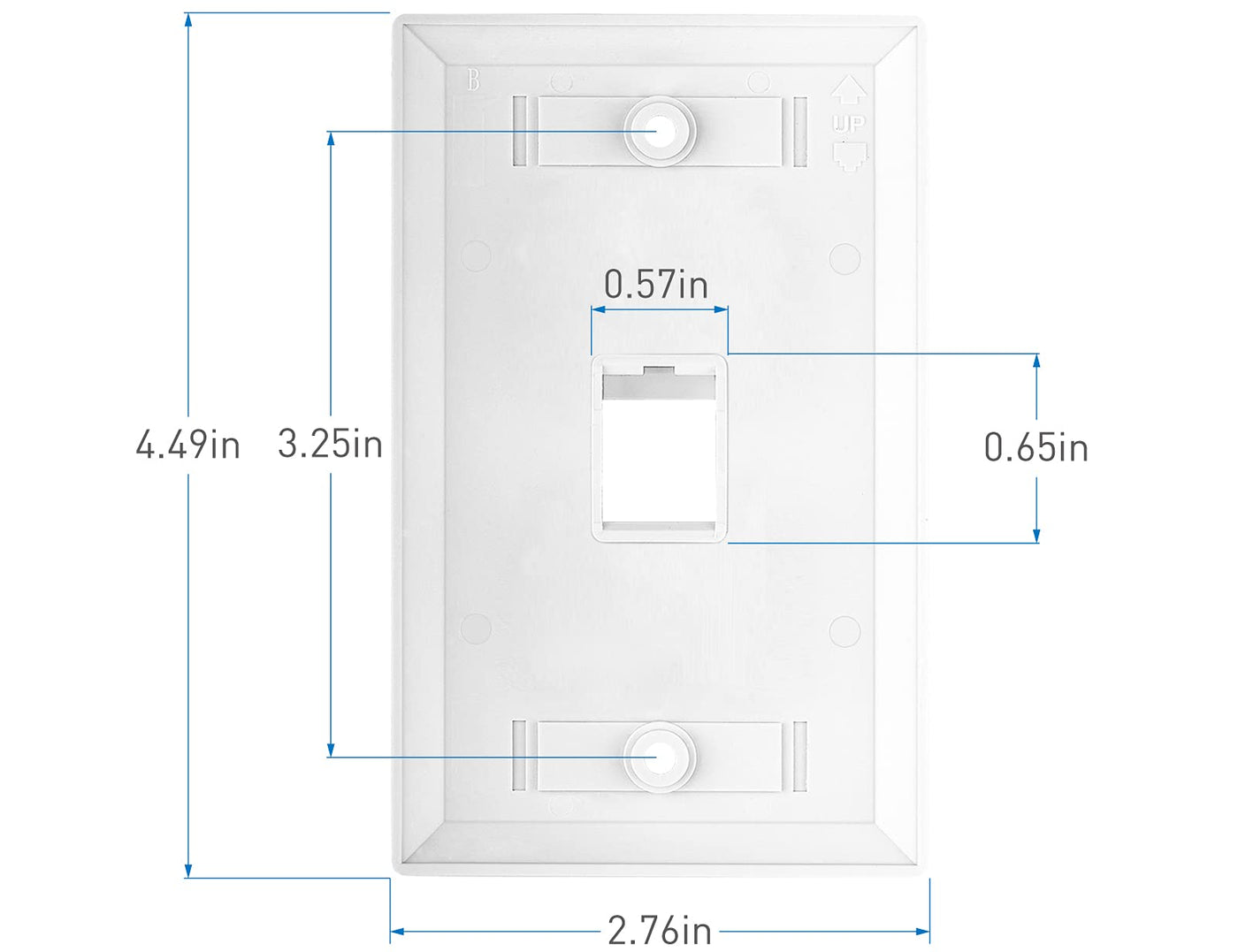 Q: What are the dimensions of the Tedgetal 1 Port Faceplate?A: The dimensions of the Tedgetal 1 Port Faceplate are 2.76 x 4.49 x 0.37 inches, making it a compact option suitable for various wall configurations.