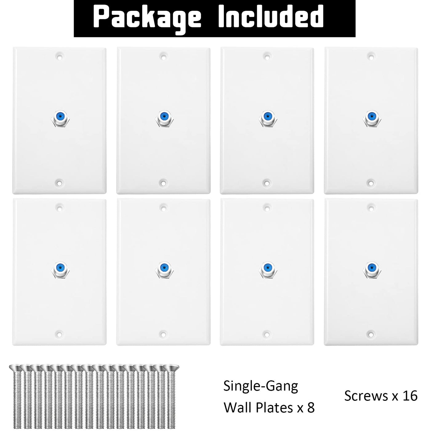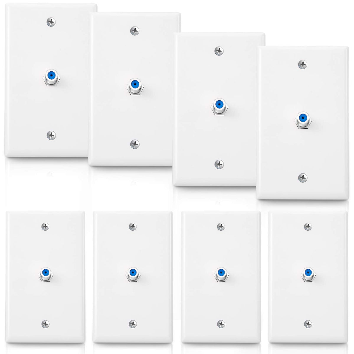 1 Port Tv Cable Wall Plate F Connector Wall Plate Coax Wall Plate Video Wall Jack Single Gang Wall Plates (White, 8 Pcs)