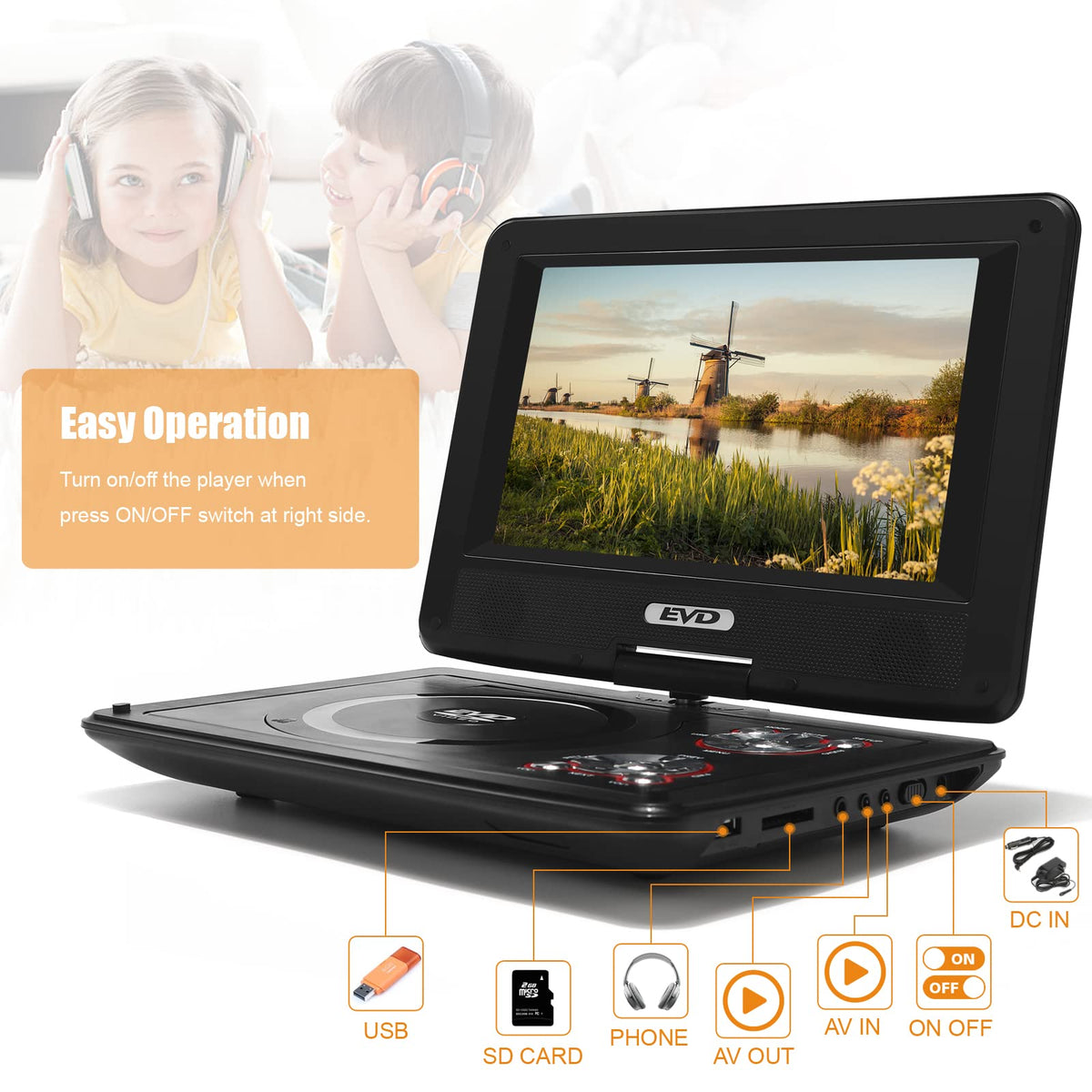 Sqqbzz Portable Dvd Player, A Perfect Choice As A Gift For Your Baby�S Birthday, Children�S Day Or Christmas Supported Multiple Formats Disc Formats: Cd, Dvd, Dvd + R(-R), Dvd + Rw(-Rw), Vcd, Svcd-R(Rw), Cd -R(Rw) Video File Formats: Vob, Avi, Mpeg 1, Mpeg 2, Xvid Audio File Formats: Mp3, Wma Image File Format: Jpeg Better Using Experiences With Free Accessories What If The Battery Is In Low Power When Out For Travelling? What If The Main Power Charger Was Missing? The Car Charger Can Be The Best Back Support For You. Easily Plug It Into Your Car Charging Port And The Discs Are Playable During Charging Time.