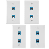 4 Pieces 2 Port Ethernet Wall Plate, Rj45 Cat6 Female To Female Jack Inline Coupler Faceplates (Blue)