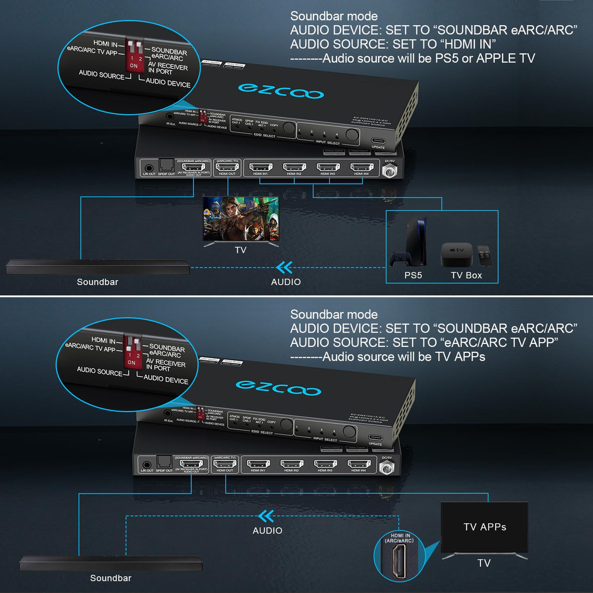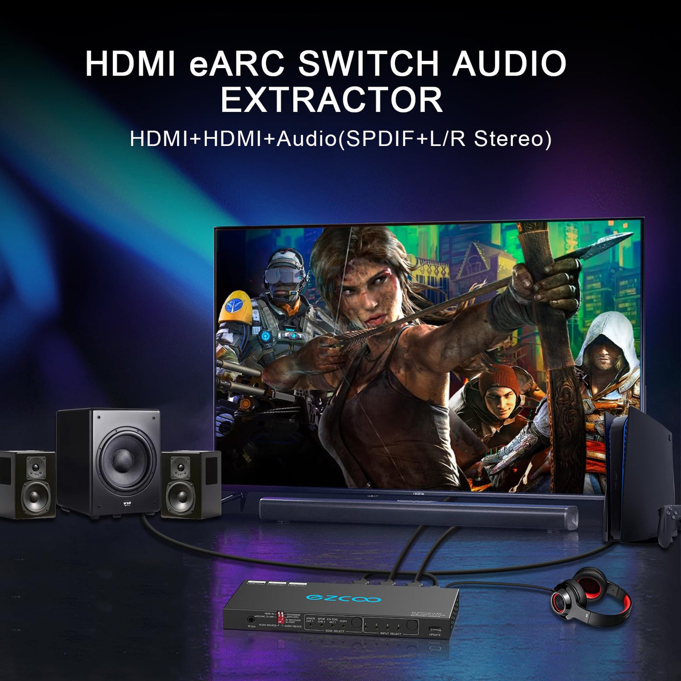 4K@120Hz Hdmi 2.1 Switch 4 In 1 Out With Audio Extractor Vrr Allm Hdcp2.3 Arc Earc Hdr Cec Spdlf Optical And 3.5Mm Audio Out D O