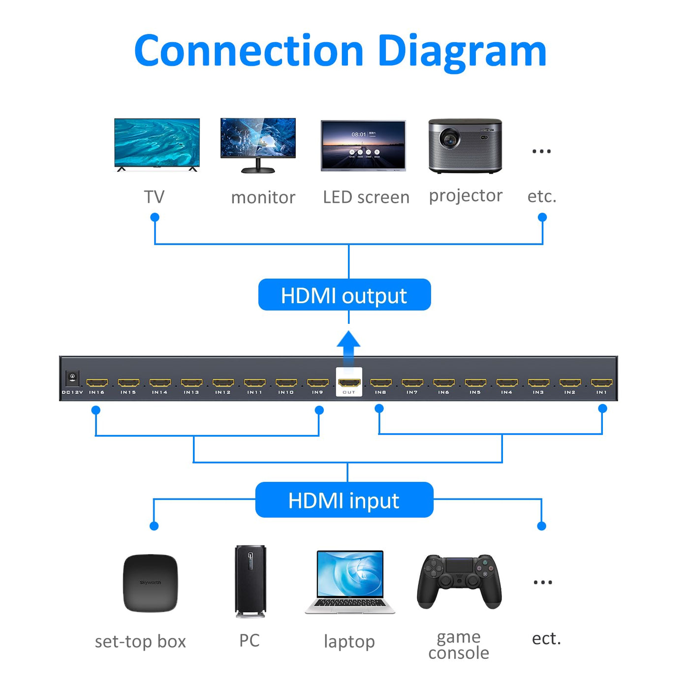 4K Hdmi Multiviewer 16X1, Yinker 4K@30Hz Seamless Switcher 16 In 1 Out With Ir Remote, 10 Display Modes For Plug And Play, Suitable For Set Top Boxes, Consoles, Gaming Consoles, And Laptops