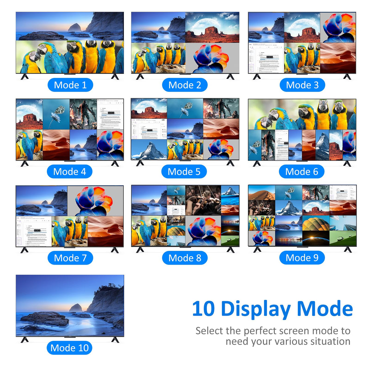 4K Hdmi Quad Multiviewer 16X1, Yinker 4K@30Hz Seamless Hdmi Quad Switcher 16 In 1 Out For Security Camera, Gaming Consoles, Single/Quad/Dual/Pbp Modes With Ir Remote. Just Plug And Play, No Drivers, Easy To Use.