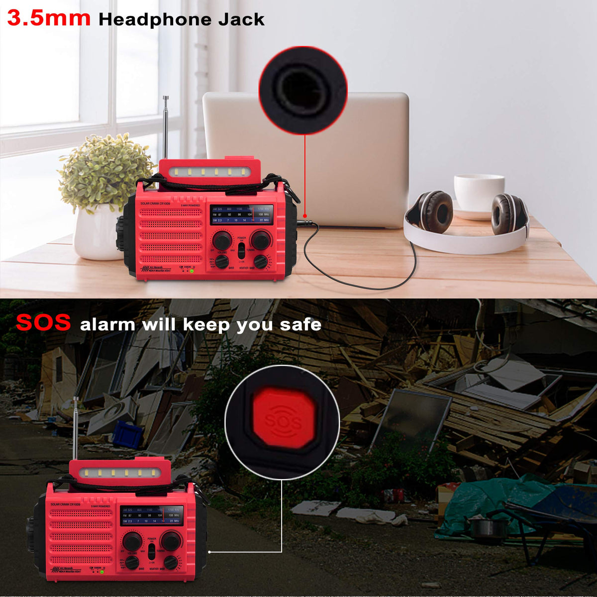 5000Mah Weather Alert Radio, Am/Fm/Sw/Noaa Radio, Solar Hand Crank Portable Survival Emergency Radio,Rechargeable Battery Power