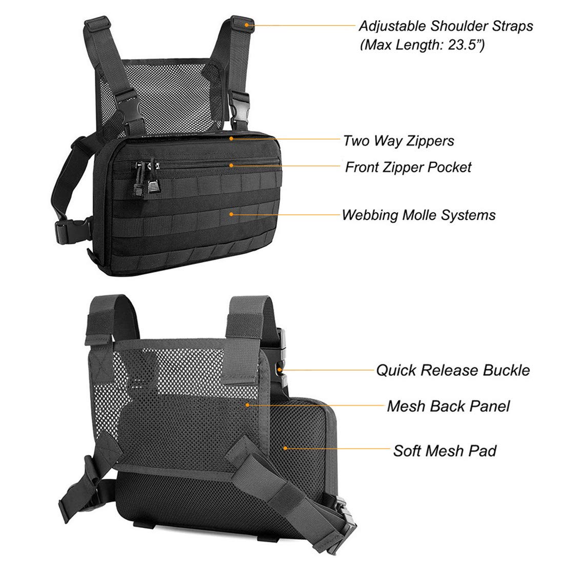 Abcgoodefg Tactical Chest Rig Molle Radio Chest Harness Holder Holster Vest Front Chest Pouch Outdoor Chest Bag Chest Pack (Black)