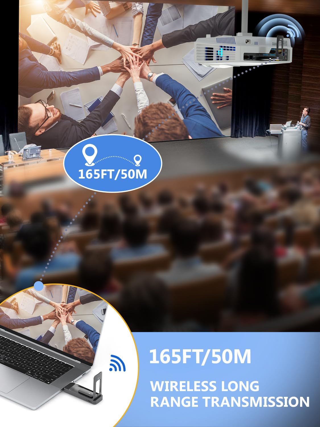 Aimibo Wireless Hdmi Transmitter And Receiver 4K, Foldable Antenna, 5.8G & 2.4G Wireless Hdmi Extender, Plug And Play, For Lapto