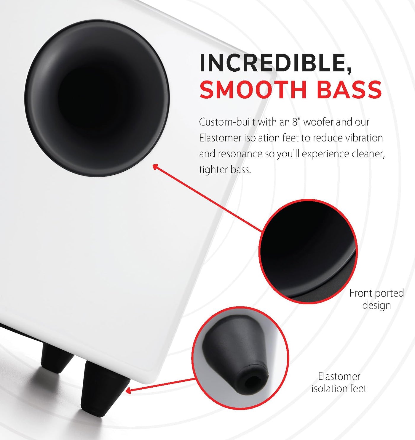 The S8 Subwoofer Has A Super-Fast Woofer Designed For Audio And Home Theater Performance. Our S8 Subwoofer Has An 8' Custom Woofer And Is Small Enough To Place In A Corner Or Hide Behind Furniture. It Features An Anti-Resonant Steel Frame And Heavy-Duty Rubber Speaker Surround For Accurate Low End. The S8�S Bottom-Firing And Front-Ported Design Means You�Ll Hear Quick, Precise Bass With No Distortion, Even At Higher Volume Levels. The S8 Delivers Great Bass Performance And Its Low, Tight, And Smooth Bass Will Blend Well With The Other Speakers In Your System.