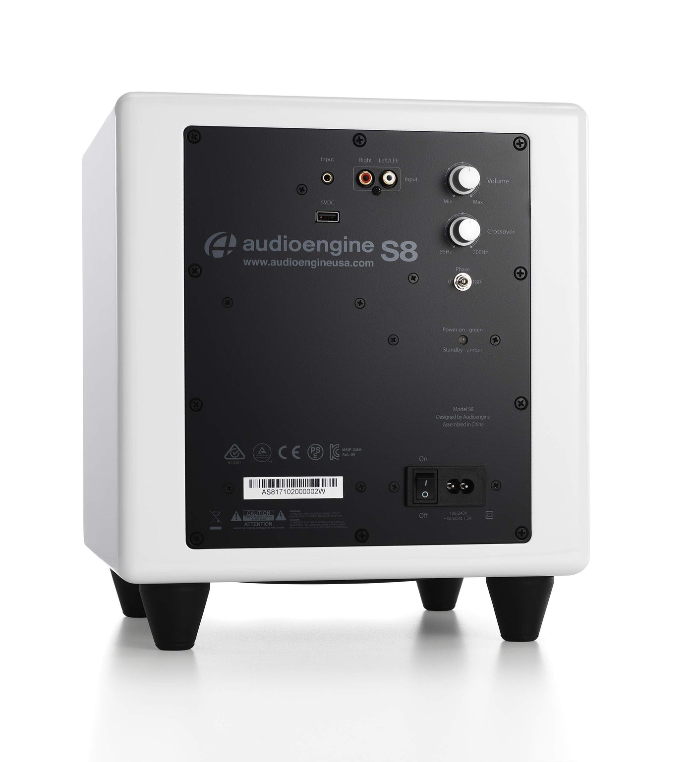 Audioengine S8 8' 250W Powered Home Audio Subwoofer Speaker Built In Amplifier And Dual Audio Inputs White