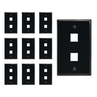 Beszin 2 Port Keystone Jack Wall Plate With Smooth Face (10 Pack, Black)