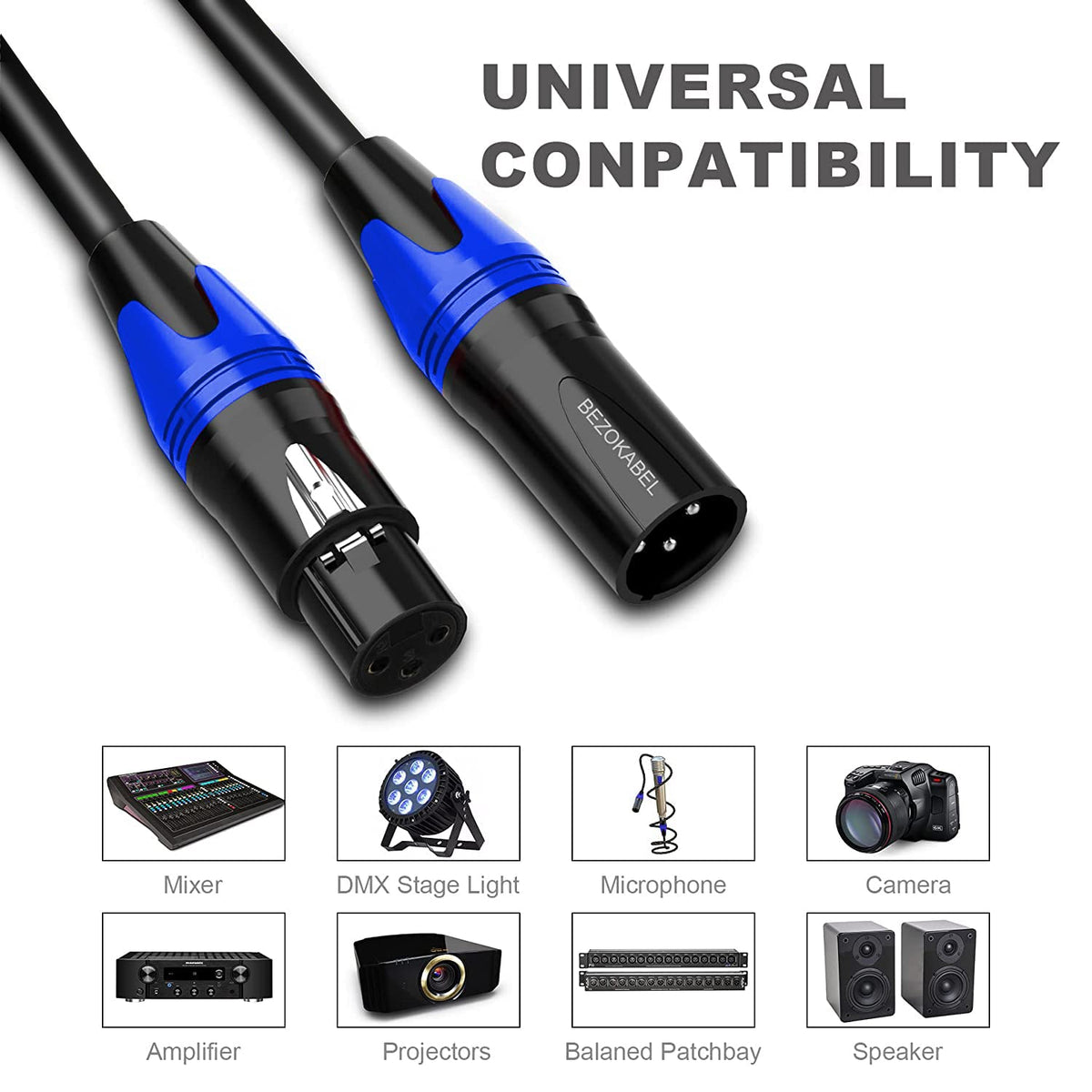 Q: Are these XLR cables compatible with all devices that have XLR connectors?A: Yes, the BEZOKABEL XLR cables are compatible with any device that has a standard 3-pin XLR connector. This includes microphones, stage lighting, mixing consoles, and various studio equipment.