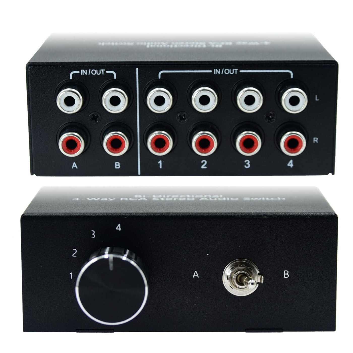 Q: Can I use this audio switcher with different types of audio devices?A: Yes, this RCA Female Stereo 4 Channel Splitter is compatible with various audio devices, including speakers, amplifiers, and other RCA-enabled equipment, making it versatile for different setups.