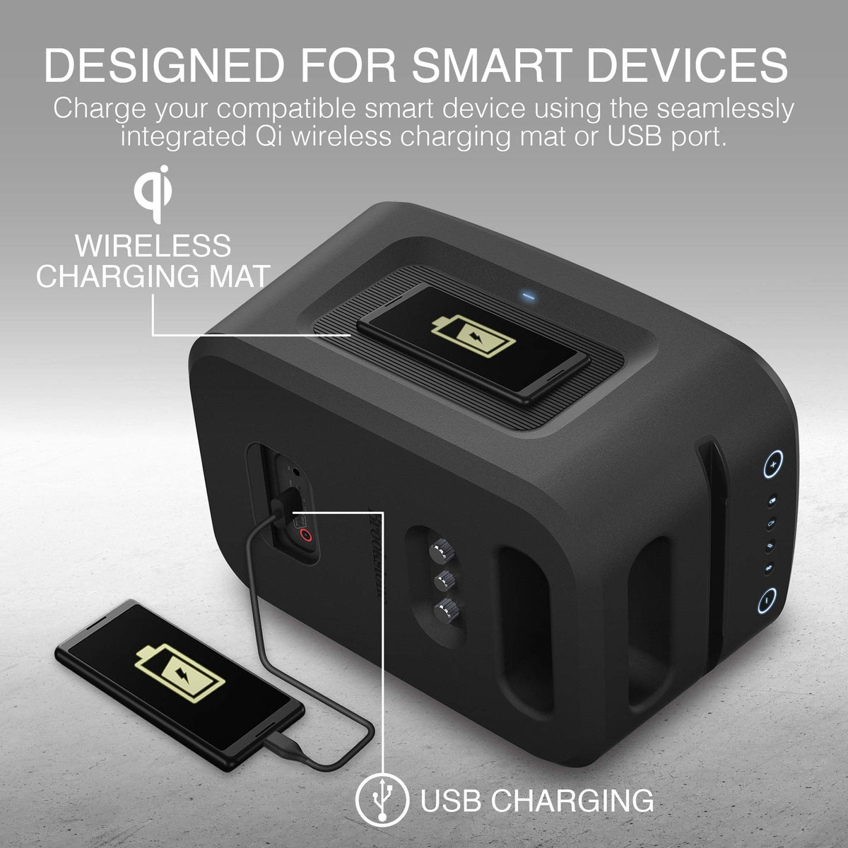 Brookstone Bluetooth Speakers, Ipx5 Waterproof Outdoor Speaker, Portable Bluetooth Speaker With Led Light Show, 60 Watt Rms Speaker, Wireless Charging Pad For Smartphone, Connect Multiple Speakers