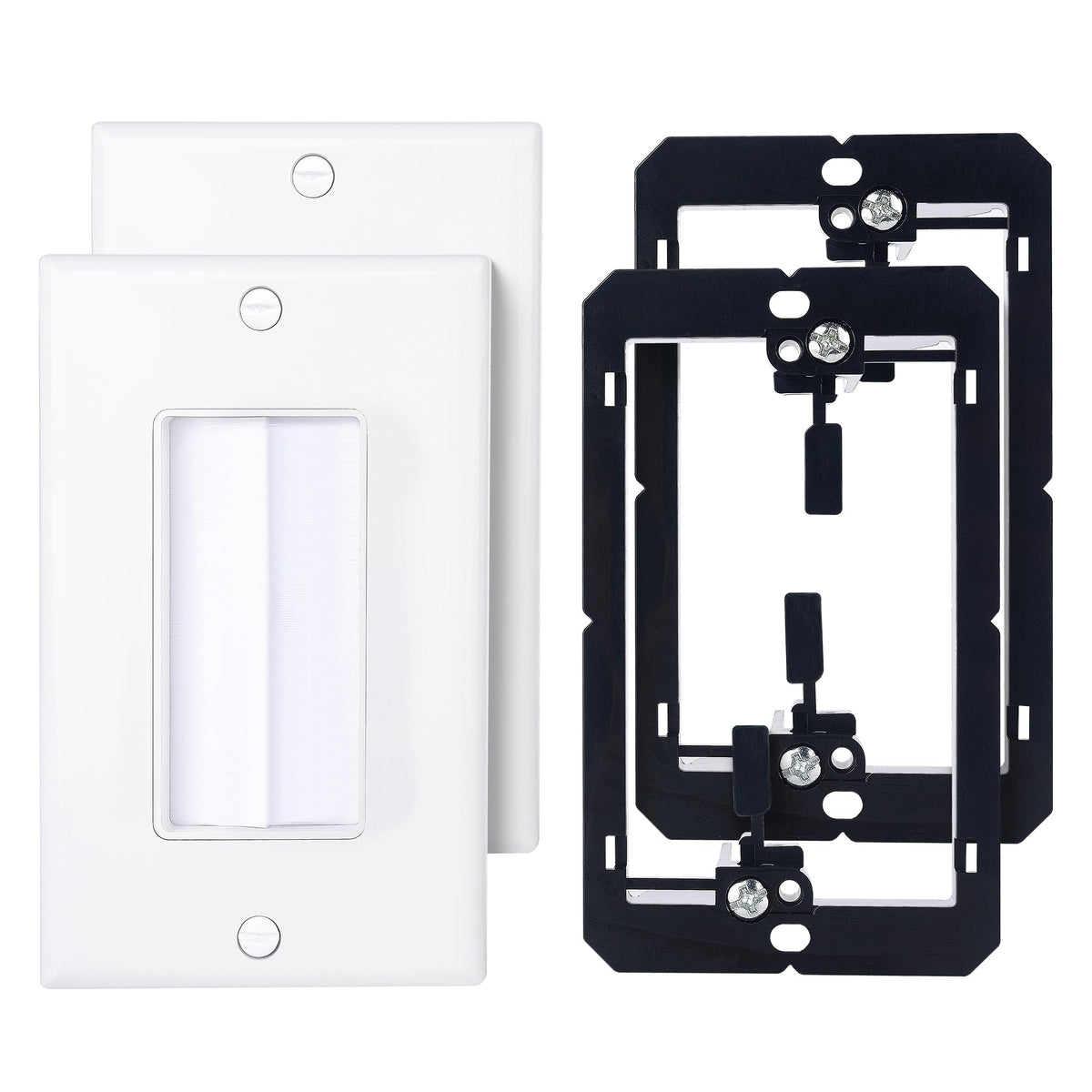 Cable Matters 2 Pack 1 Gang Wall Cable Pass Through, Brush Wall Plate With Bracket (Cable Pass Through Wall Plate)