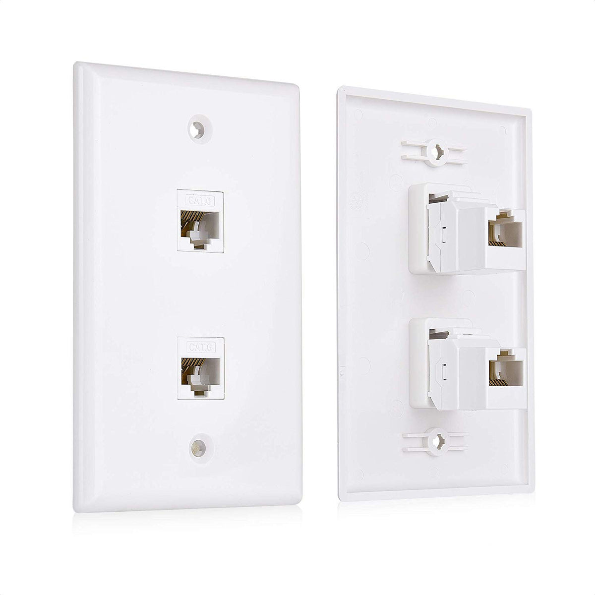 Connect More With Cable Matters Networking Products Instant Ethernet Network Locations The Cable Matters 2-Port Keystone Jack Wall Plate With Cat 6 Rj45 Inserts Is The Perfect Solution For Adding A New Cable Location In The Home Or Office. These Low-Profile Wall Plates Sit Almost Flush With The Wall. Install It Easily In The Space Of A Single-Gang Wall Receptacle Or Add A New Location With A Low-Voltage Mounting Bracket. Cost-Effective 2-Pack With A Lifetime Warranty This Convenient 2-Pack Provides Enough Wall Plates For Two Locations In Your Home Or At Work. A Lifetime Warranty Is Included With These Wall Plates For Peace Of Mind When Purchasing. Package Contents - 2X Single-Gang 2-Port Rj45 Keystone Jack Wall Plates - 4X Mounting Screws Warranty Limited Lifetime Warranty And Lifetime Product Support