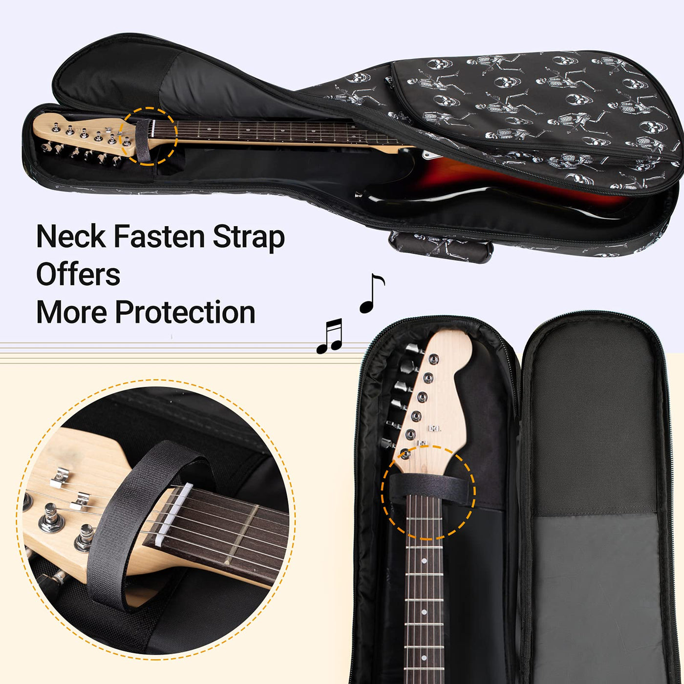 Cahaya Electric Guitar Gig Bag Printing Soft Guitar Case 8Mm Padding Guitar Bag Backpack With Handle Loop Halloween Skeleton