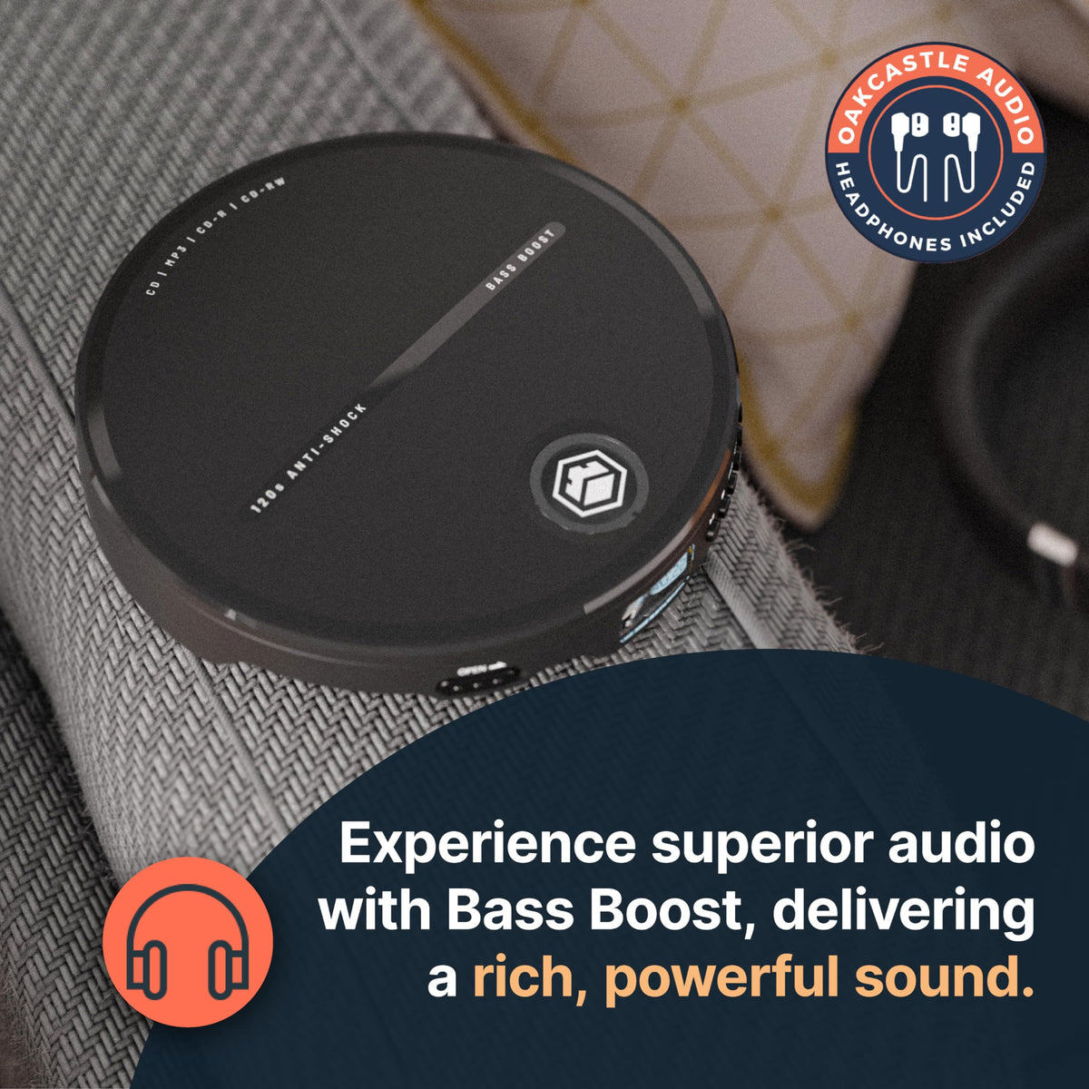 Cd Player Portable, Battery Playback Portable Cd Player 7Hr Playtime, Small Cd Players For Car (Aux Only) | Oakcastle Cd10 Porta