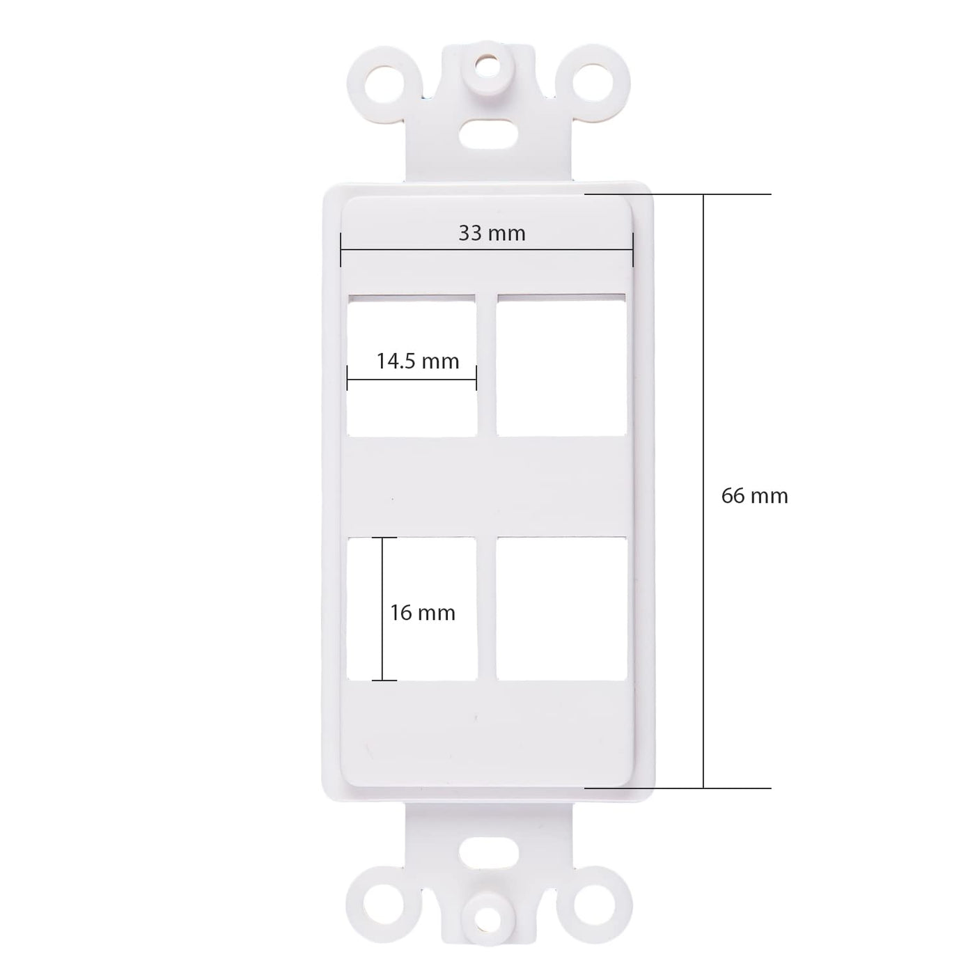 Q: Can I use this wall plate adapter with standard Decora wallplates?A: Yes, the ChaosssCo Decorator Keystone Insert is compatible with all standard Decora wallplates, ensuring a seamless installation and aesthetic integration.