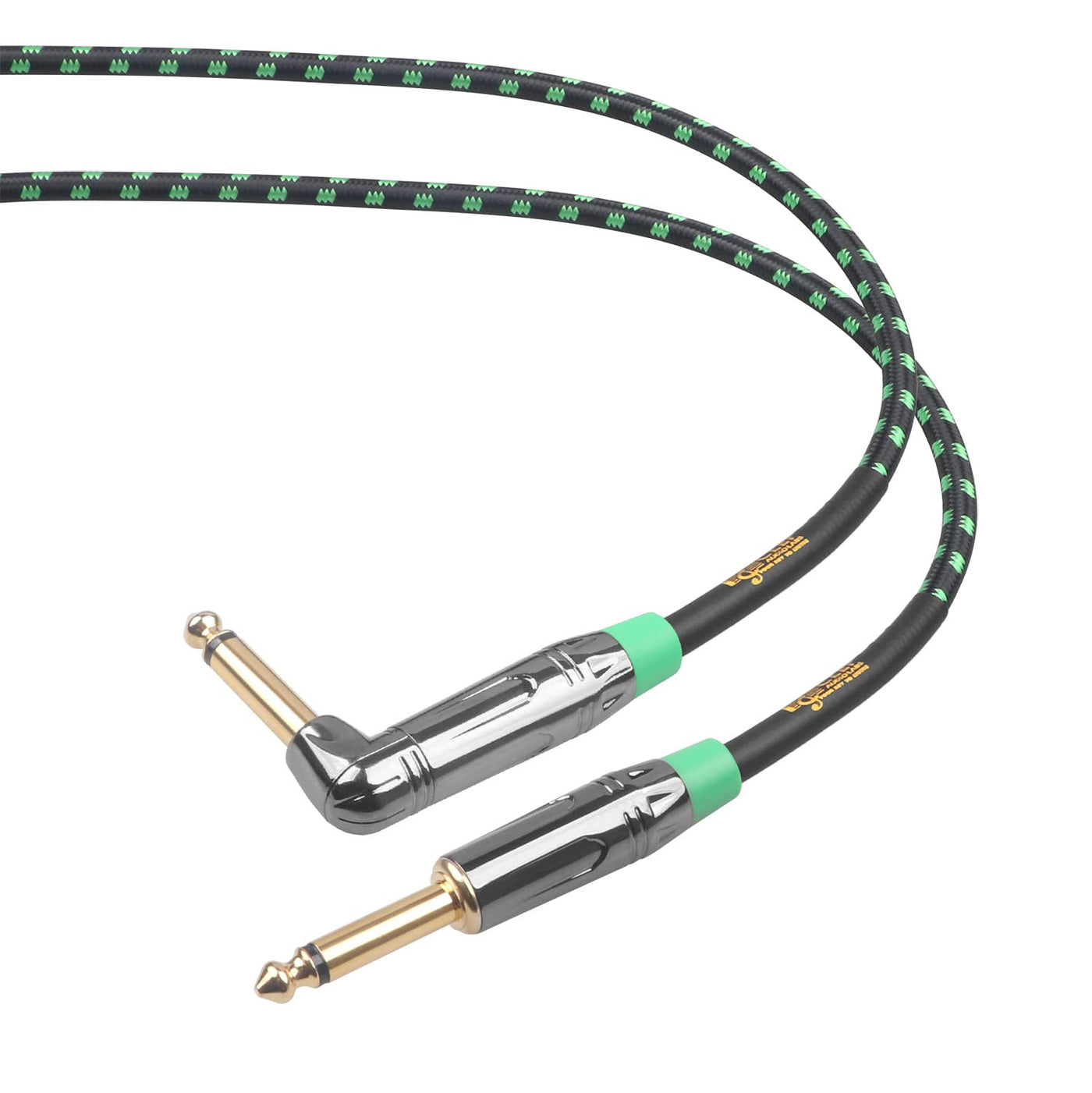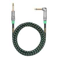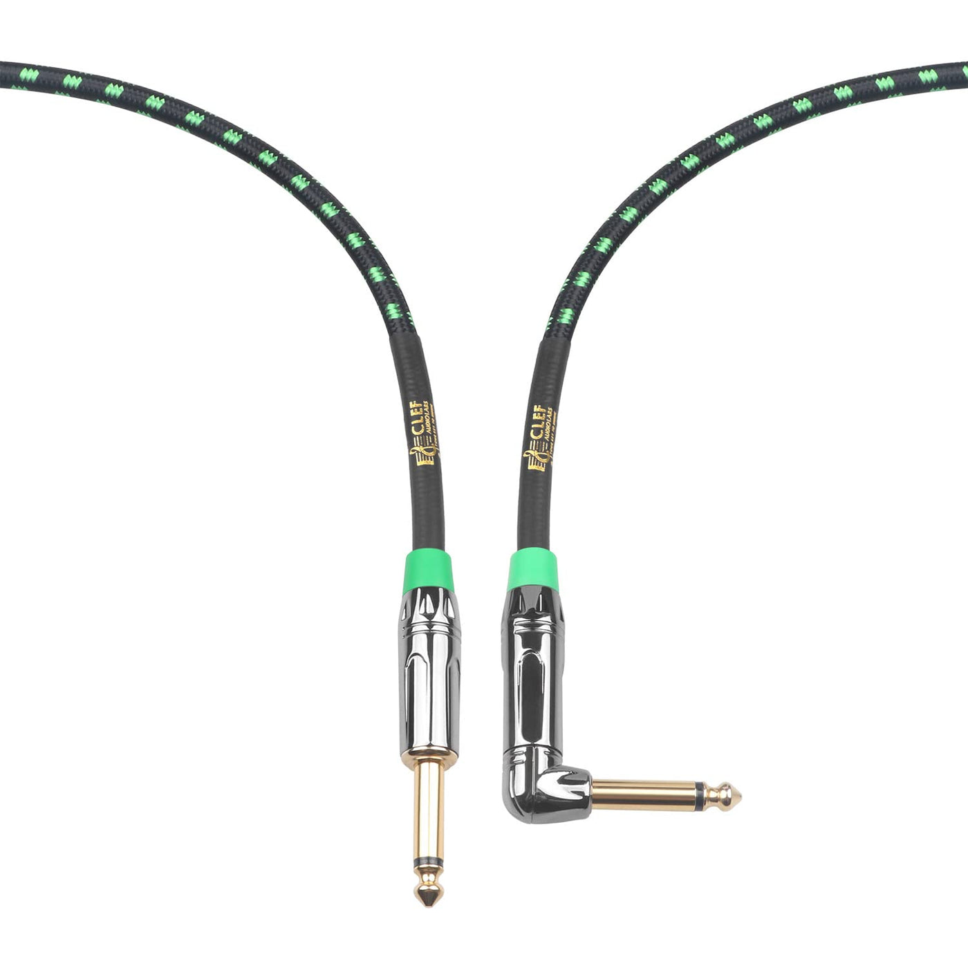 Clef Audio Labs 6.35Mm Ts To 6.35Mm Ts Straight To Angled, Black Chrome Zinc Alloy Shell/Green Braided 10Ft 1Pk