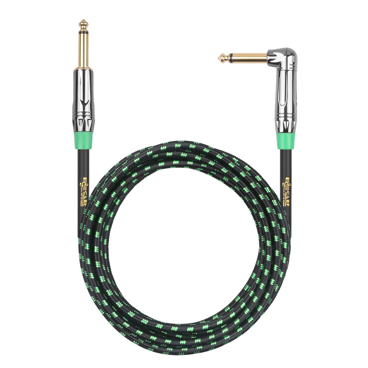 Clef Audio Labs 6.35Mm Ts To 6.35Mm Ts Straight To Angled, Black Chrome Zinc Alloy Shell/Green Braided 6Ft 1Pk