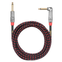 Clef Audio Labs 6.35Mm Ts To 6.35Mm Ts Straight To Angled, Black Chrome Zinc Alloy Shell/Red Braided 20Ft 1Pk