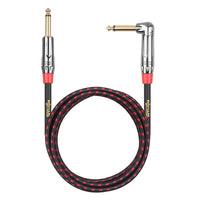 Clef Audio Labs 6.35Mm Ts To 6.35Mm Ts Straight To Angled, Black Chrome Zinc Alloy Shell/Red Braided 6Ft 1Pk