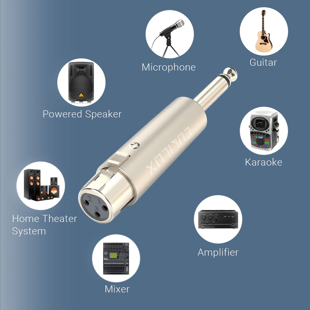 Cubilux 1/4-Inch To Xlr Converter Lets You Connect 6.35Mm Guitar, Keyboard, Drum, Speaker, Karaoke Machine To Xlr Mixer, Power Amplifier, Microphone For Easy And Lossless Audio Signal Transmission.