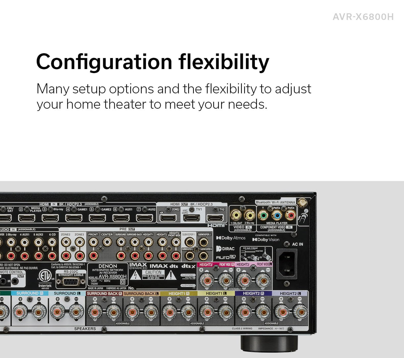 Denon Avr X6800H 11.4 Channel Av Receiver 140W/Channel, Wireless Streaming Via Built In Heos, Wifi, & Bluetooth, Supports Dolb