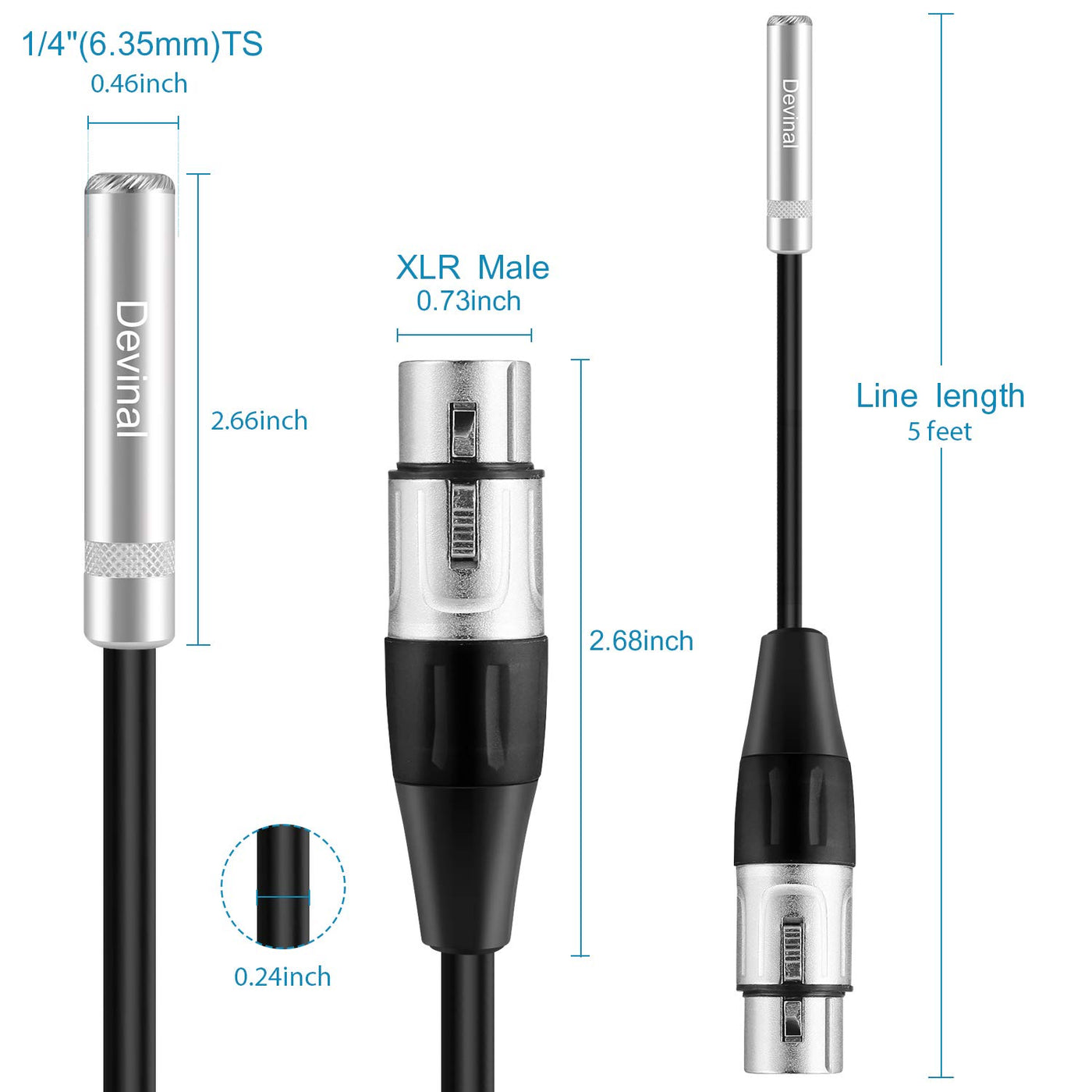Devinal Xlr Female To 1/4' Female Calbe, 3 Pin Female To 6.35Mm Socket Audio Cord, Xlr Jack To Ts/Trs Quarter Inch Adapter Connector Converter Metal Construction 5Ft 1.5 Meters