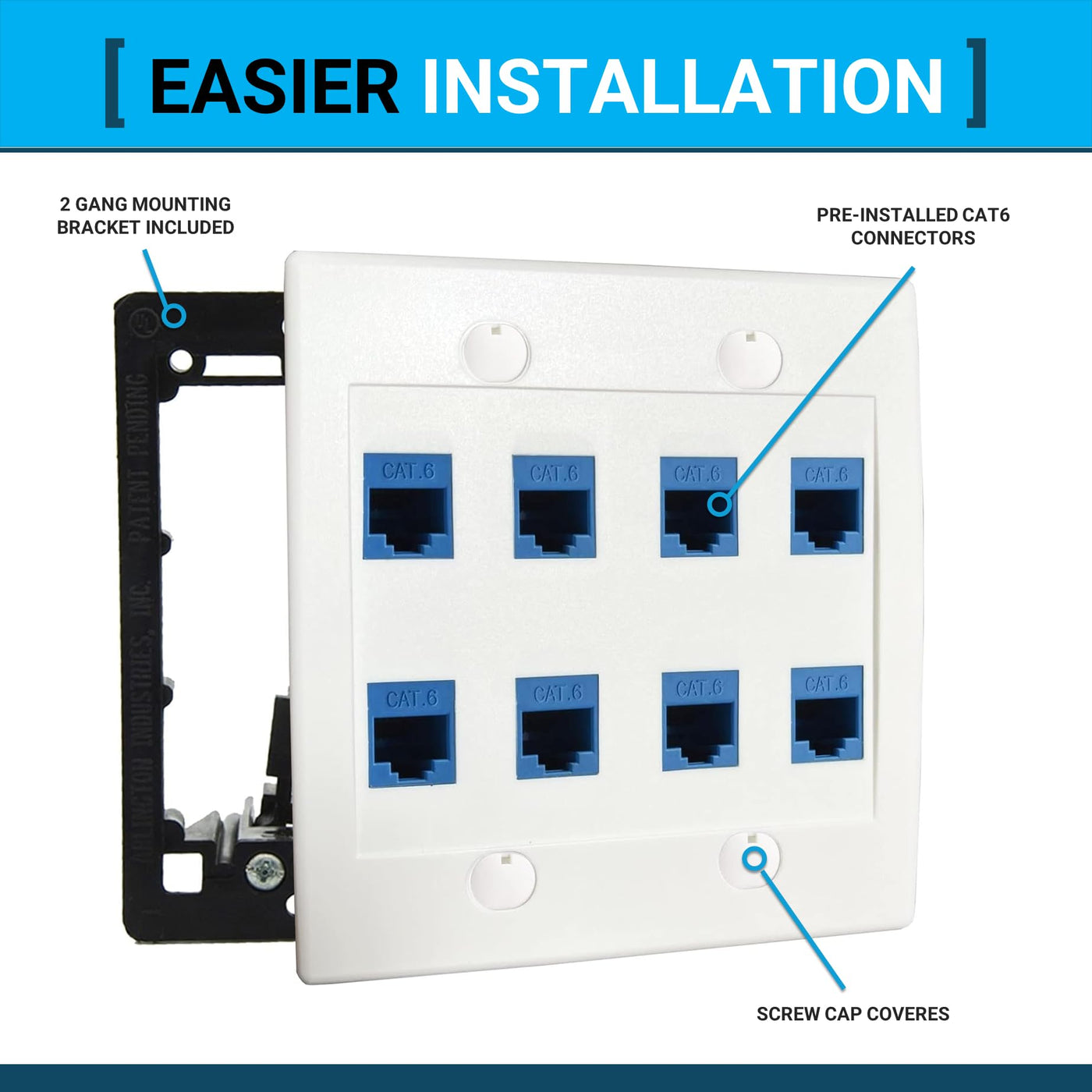 Diytech Ethernet Wall Plate 8 Port Rj45 Cat6 Ethernet Wall Outlet, Female To Female Cat6 Wall Jack Keystone, Ethernet Plug In