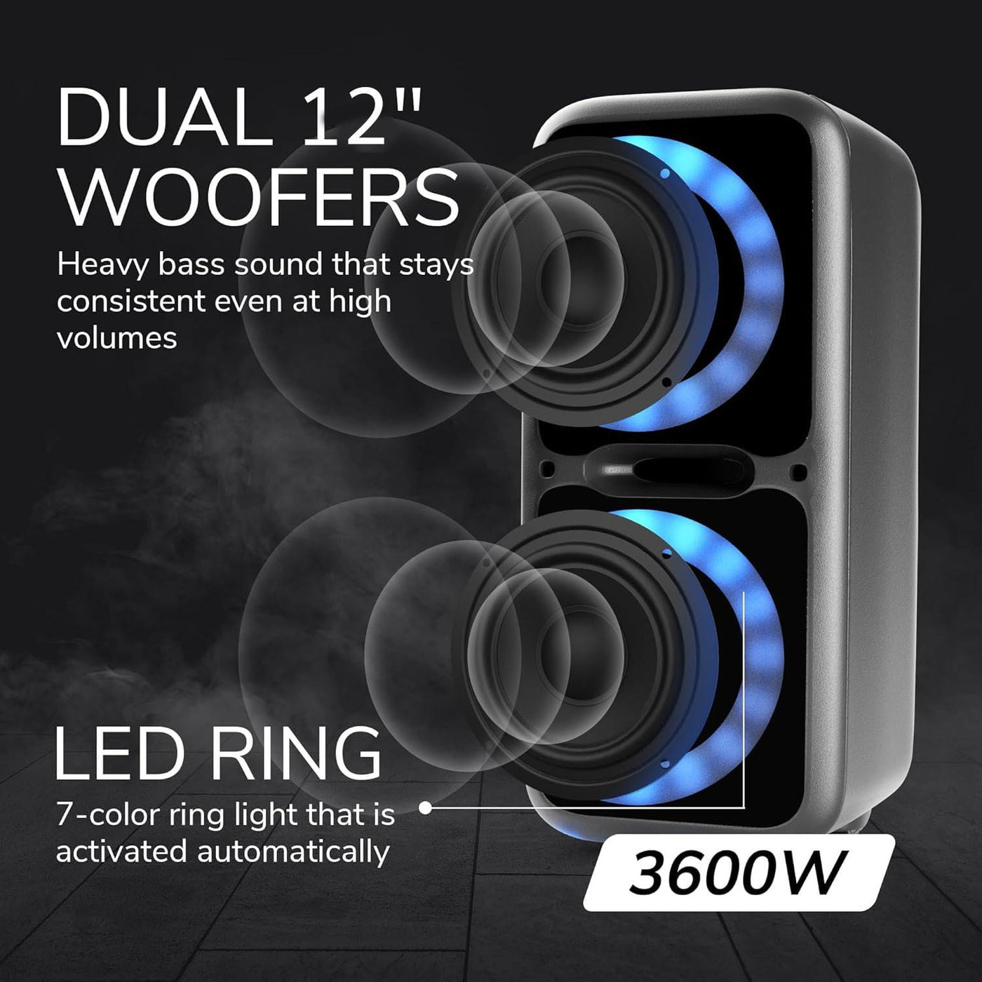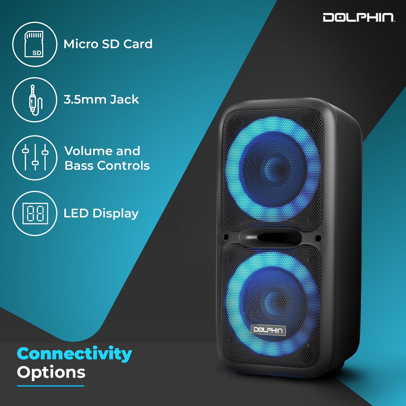 ?? Dynamic Sound Quality: Equipped With Dual 12-Inch Woofers And A Hi-Fi Amplifier, The Dolphin Sp-2120Rbt Delivers Crystal-Clear, Powerful Sound With Deep, Resonant Bass. Experience The Richness Of Your Music, Whether Indoors Or Outdoors. | ?? Versatile Connectivity Options: Seamlessly Connect Via Bluetooth For Wireless Streaming, Use The Usb Port For Mp3 Playback, Or Plug In With The Auxiliary Input. A Built-In Microphone Input Allows For Karaoke Or Announcements, Making It Perfect For Parties, Events, And Gatherings. | ?? Customizable Audio Experience: Fine-Tune Your Audio With A 5-Band Equalizer To Match Any Genre Of Music. From Jazz To Pop, Control Bass, Treble, And Mids To Create The Perfect Sound Ambiance For Your Event. | ?? Led Party Light Show: Transform Any Space Into A Concert-Like Atmosphere With Vibrant Led Lights That Sync To The Beat Of Your Music. The Sp-2120Rbt Turns Any Gathering Into A Memorable Event With Its Captivating Visual Display. | ?? Extended Battery Life For Uninterrupted Play: Enjoy Hours Of Continuous Music Thanks To The Speaker'S Long-Lasting Rechargeable Battery. Perfect For Outdoor Parties, Beach Outings, And All-Day Events Without The Worry Of Finding A Power Outlet.