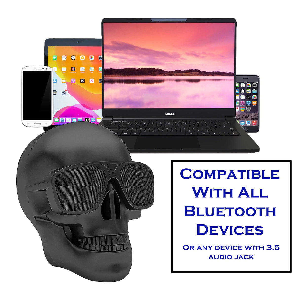 About Us Dubbs Hardware Is Committed To Selling You The Best Product At An Even Better Value. We Are Based Out Of The United States And Looking To Grow Our Brand. Customer Service Is Our Top Priority So Let Us Know If There Are Any Problems Whatsoever. Specifications Model: Skull With Sunglasses Connection Mode: Bluetooth Connectivity, 3.5 Mm Audio Jack Interface Type: Usb / Tf Signal To Noise Ratio: 75 Db Or Higher Power Supply: Built-In Lithium Battery Frequency: 60 Hz To 15 Khz Battery Capacity: 4000 Mah The Broadcast Time: 5-7 Hours Horn Specification: 5.7Cm, 8 W Distortion Rate: 1% Or Less Product Size: 5*4*5 Inches Net Weight: 13.2 Oz Packing Size: 4.125*5*5.5 Inches Included 1 X Bluetooth Speaker 1 X Auxiliary Cord 1 X Micro Usb Charging Cable 1 X Set Of Instructions 1X Removable Lanyard