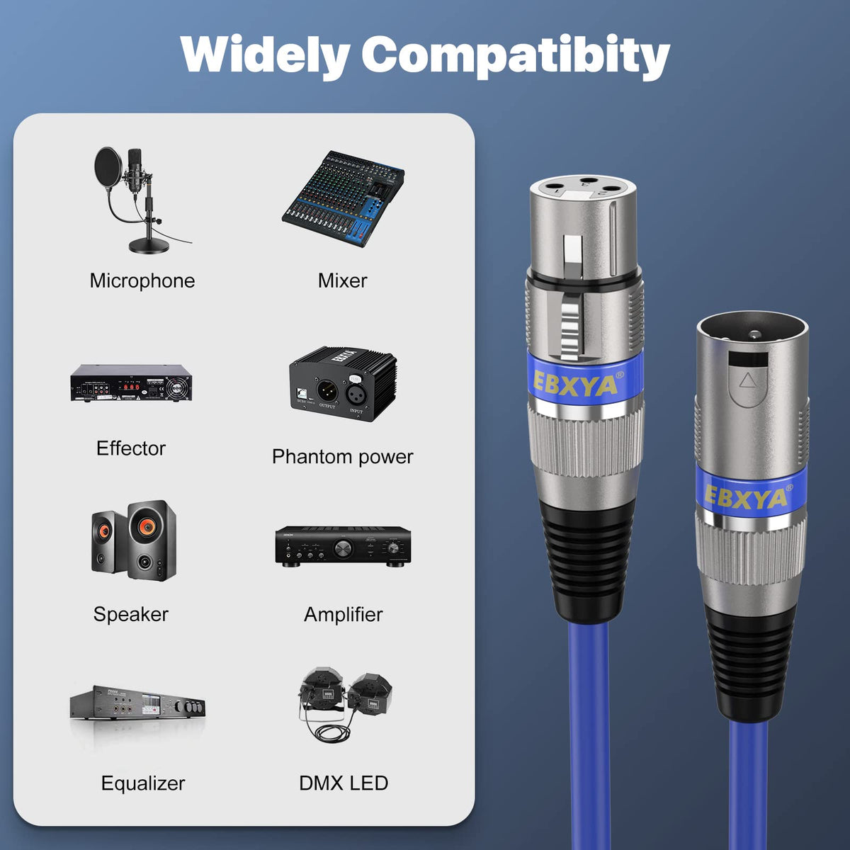 Q: Are these XLR cables compatible with all microphones?A: Yes, the EBXYA XLR cables are designed with 3-pin connectors, making them compatible with most microphones and audio equipment that utilize XLR connections.