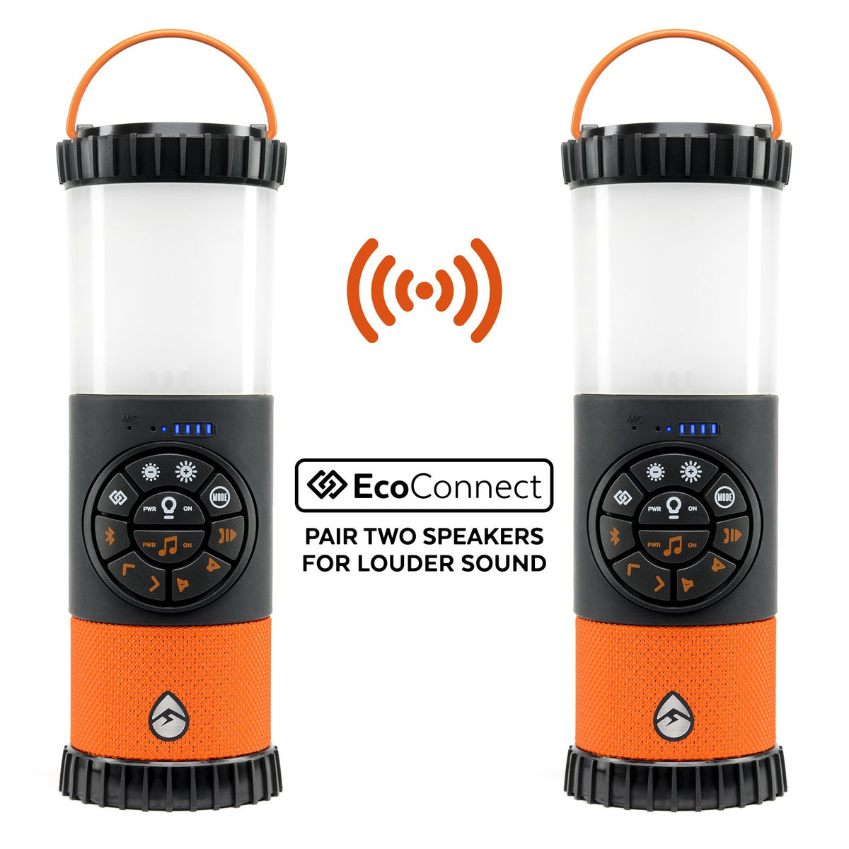Ultra-Bright 400 Lumen Cree Lantern Illuminates 360 Degrees Or 180 Degrees With 5 Light Modes: Bright White, Red, Color Fade, Music Synced, And Emergency | Full Warm 360 Degree Sound Resonates From Behind The Rugged Dirt And Waterproof Performance Fabric Grill, Clear Highs And Warm Bass Like Much Larger Speakers. | Integrated 4,400 Mah Battery Provides Up To 24 Hours Of Light At The Dim Light Setting, 2-3 Smartphone Charges, And Up To 20 Hours Of Music Play. | The 100% Waterproof Ecolantern Is Designed To Meet Ip67 Waterproof And Dustproof Standards. Functional And Rugged, Built To Survive Your Adventures - Snow, Rain, Dirt And Even Submersion In Water. | The Built In Ecotalk Button Connects The Lantern Directly To Your Phone�S Ok Google Or Siri Voice Assistants. ( Ecolantern Must Be Connected Via Bluetooth To Your Smartphone For Ecotalk To Function.)