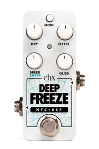 Meeting Between The Original Freeze And Superego Pedals Is The Pico Deep Freeze Sound Retainer. With The Ability To Freeze A Moment In Sound, The Deep Freeze Can Act As A Sustain Pedal For Holding Chords And Notes As Backing For Your Playing Or As A Platform To Manipulate Your Tone Into New Sounds Impossible With A Normal Guitar. In Addition To The Original Freeze�S Abilities, The Deep Freeze Features Layering, Adjustable Attack/Decay Speeds, Glissando, Dedicated Volume Controls, And 3 Modes: Latch, Moment, And Auto, Making It Powerful Pedal Punching Well Above Its Weight. The Deep Freeze Allows For Instant Sound Freezing In Three Modes Of Operation. Latch Freezes Sound Each Time The Footswitch Is Pressed Until The Effect Is Bypassed, While Moment Mode Freezes Sound Only While The Footswitch Is Held Down. Auto Mode Captured Sound Automatically Each Time It Senses Signal Above Its Threshold For Virtually Foot-Free Freezes. These Three Modes Make It Easy To Operate The Deep Freeze In A Way That Fits Any Playing Style. Controls On The Deep Freeze Let You Further Tailor The Operation Of The Effect. Separate Dry And Effect Volume Controls Let You Blend Signals From Subtle Backing To 100% Effect Experimentation. Gliss Adjusts The Morph Time Between Freeze Sounds Creating Otherworldly Soundscapes. The Speed/Layer Knob Adjusts Either The Attack/Decay Time Of The Effect In Moment And Auto Modes, Or The Amount Of Layering Possible In Latch Mode Which Makes Playing Impossible Chords Possible!