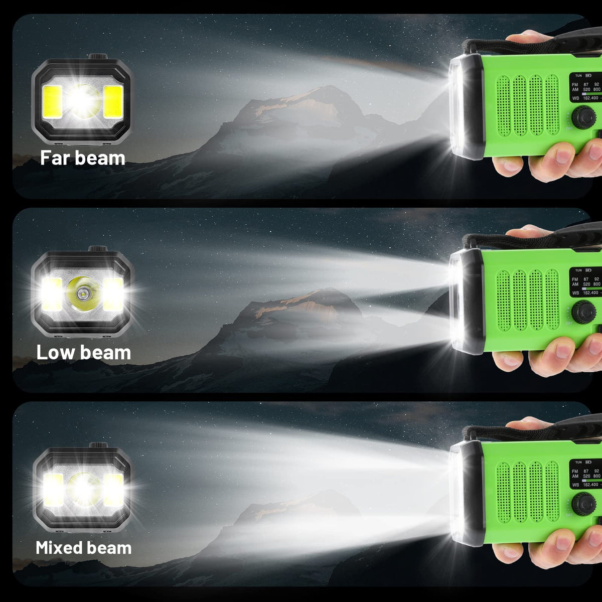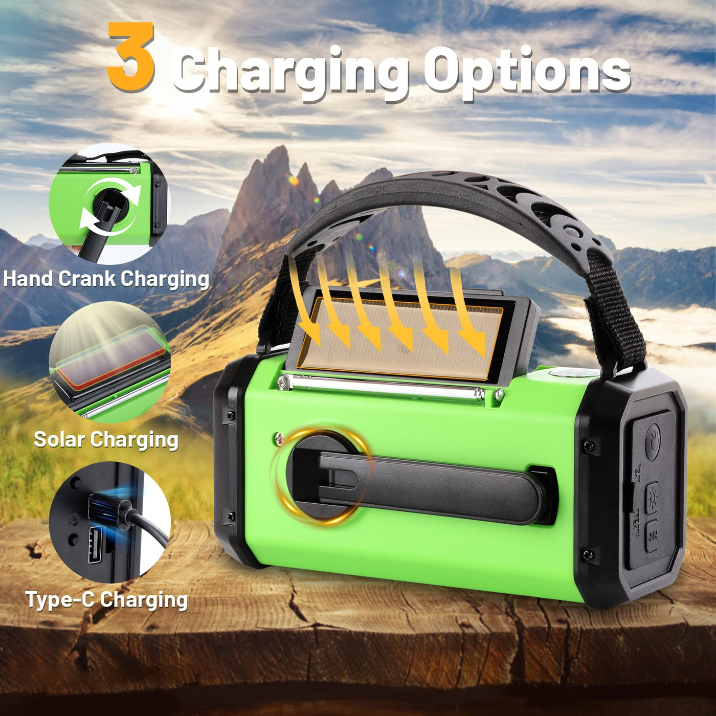 Emergency Radio-The Emergency Weather Radio Can Receive Noaa And Am/Fm Signal.When You In Emergency,It Provide The Important Information For You Needs.You Can Get The Latest Emergency Weather News And Information For Outside. Huge Power Bank-The Weather Radio Have 10000Mah Power Bank Which Is Super Huge Emergency Power Bank.It Would Not Never Let Your Phone Power Off. Easy To Carry-The Weather Radio Has A Nylon Strap For Carry.The Rechargeable Weather Radio Is Practical And Portable. The Protable Radio For Camping Also Have A Compass Which Is On Top Of The Radio.Its Very Helpful To Identify The Direction When You Are Hiking,Camping Or Any Other Outdoor Sports. Three Ways To Charge-The Weather Radio Has 3 Rechargeable Ways Includes Type-C Charge,Solar Prowe Emergency Radio And Hand Crank And .Whatever You Choice,It Can Charge Your Radio And Make It Full Charge. 3 Led Flashlight-The Am Fm Radio Has 3 Led Mode Flashlight Which You Need You Can Control The Brightness.Its Very Practical To Light In A Darkness.No Only The Flashlight,But Also A Reading Lamp.Perfect For Reading Indoors With Weather Light.Lost Love For Everyone-Gift Idea For Men,Women,Boy,Girl,Anyone You Love.Share The Safe With Someone You Care About.