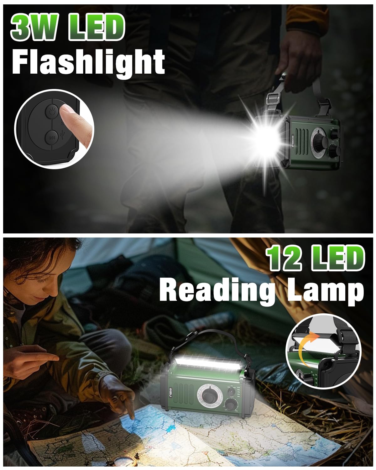 Emergency Radio, Solar Radio, 10000Mah Hand Crank Radio, Noaa Am Fm Weather Radio, 4 Charging Methods, Polymer Battery, Flashlig