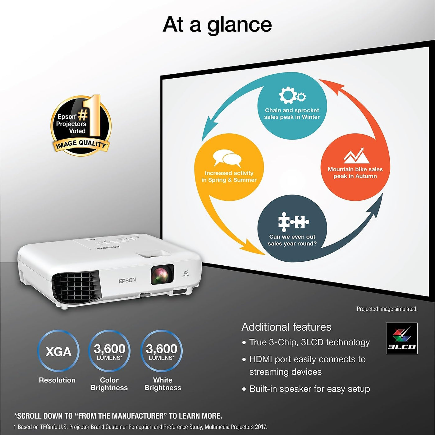 Impress Your Audience And Own The Room With The Ultra Bright Ex3280 Projector, Offering 3,600 Lumens Of Color And White Brightness (1) To Deliver Crisp, Detailed Presentations, Spreadsheets And Videos � Even In Well-Lit Spaces. From Home Offices To Large Video Conference Rooms, This Sleek, Compact Projector Makes It Easy To Display Captivating, Big-Screen Images In Nearly Any Location, Using Advanced 3-Chip 3Lcd Technology And Crisp Xga Resolution. Perfect For Creating Dynamic, Engaging Presentations, The Ex3280 Allows For Easy Zoom Video Conferencing And Conveniently Connects To Streaming Devices, Such As Fire Tv, Apple Tv, Roku, And Chromecast, Through The Hdmi Port So You Can Easily Share A Variety Of Rich Content, Including Movies, Tv Shows And More (2). 1. Color Brightness (Color Light Output) And White Brightness (White Light Output) Will Vary Depending On Usage Conditions. Color Light Output Measured In Accordance With Idms 15.4; White Light Output Measured In Accordance With Iso 21118. 2. Requires Wireless Network Connection Of 5 Mbps Or Faster. Some Apps Require Paid Subscriptions. 3. Smartway Is An Innovative Partnership Of The U.S. Environmental Protection Agency That Reduces Greenhouse Gases And Other Air Pollutants And Improves Fuel Efficiency.