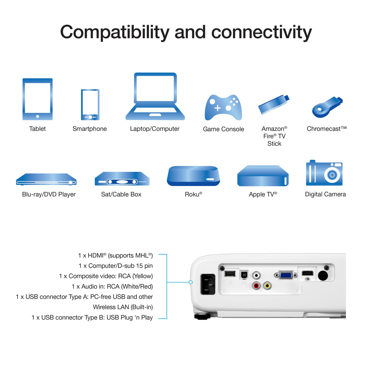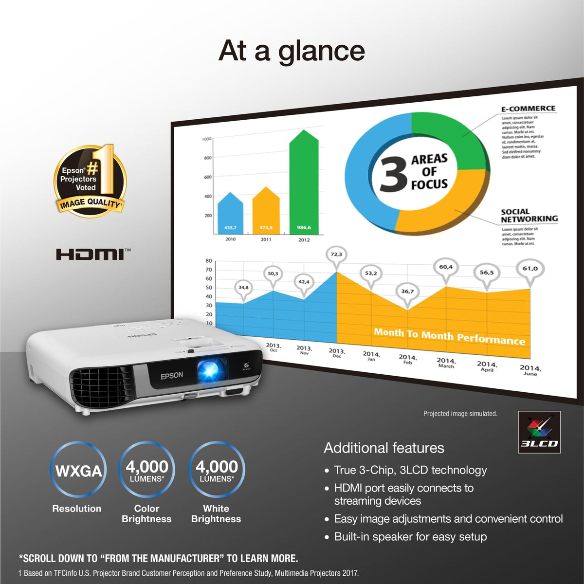 Impress Your Audience And Own The Room With The Ultra Bright Pro Ex7280 Projector, Offering 4,000 Lumens Of Color And White Brightness (1) To Deliver Crisp, Detailed, Professional-Quality Presentations, Spreadsheets And Videos � Even In Well-Lit Spaces. From Home Offices To Video Conference Rooms, This Sleek, Compact Projector Makes It Easy To Display Captivating, Big-Screen Images In Nearly Any Location, Using Advanced 3-Chip 3Lcd Technology And Stunning Wxga Resolution. Perfect For Creating Dynamic, Engaging Presentations, The Pro Ex7280 Allows For Easy Zoom Video Conferencing And Conveniently Connects To Streaming Devices, Such As Fire Tv, Apple Tv�, Roku, And Chromecast�, Through The Hdmi� Port So You Can Easily Share A Variety Of Rich Content, Including Movies, Tv Shows And More (2). 1. Color Brightness (Color Light Output) And White Brightness (White Light Output) Will Vary Depending On Usage Conditions. Color Light Output Measured In Accordance With Idms 15.4; White Light Output Measured In Accordance With Iso 21118. 2. Requires Wireless Network Connection Of 5 Mbps Or Faster. Some Apps Require Paid Subscriptions. 3. Check For Convenient And Reasonable Recycling Options With Us 4. Smartway Is An Innovative Partnership Of The U.S. Environmental Protection Agency That Reduces Greenhouse Gases And Other Air Pollutants And Improves Fuel Efficiency.