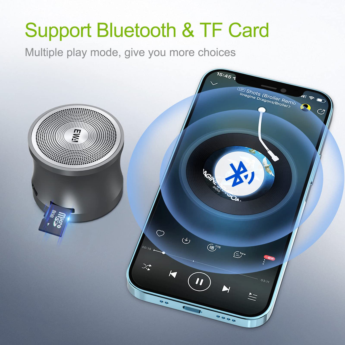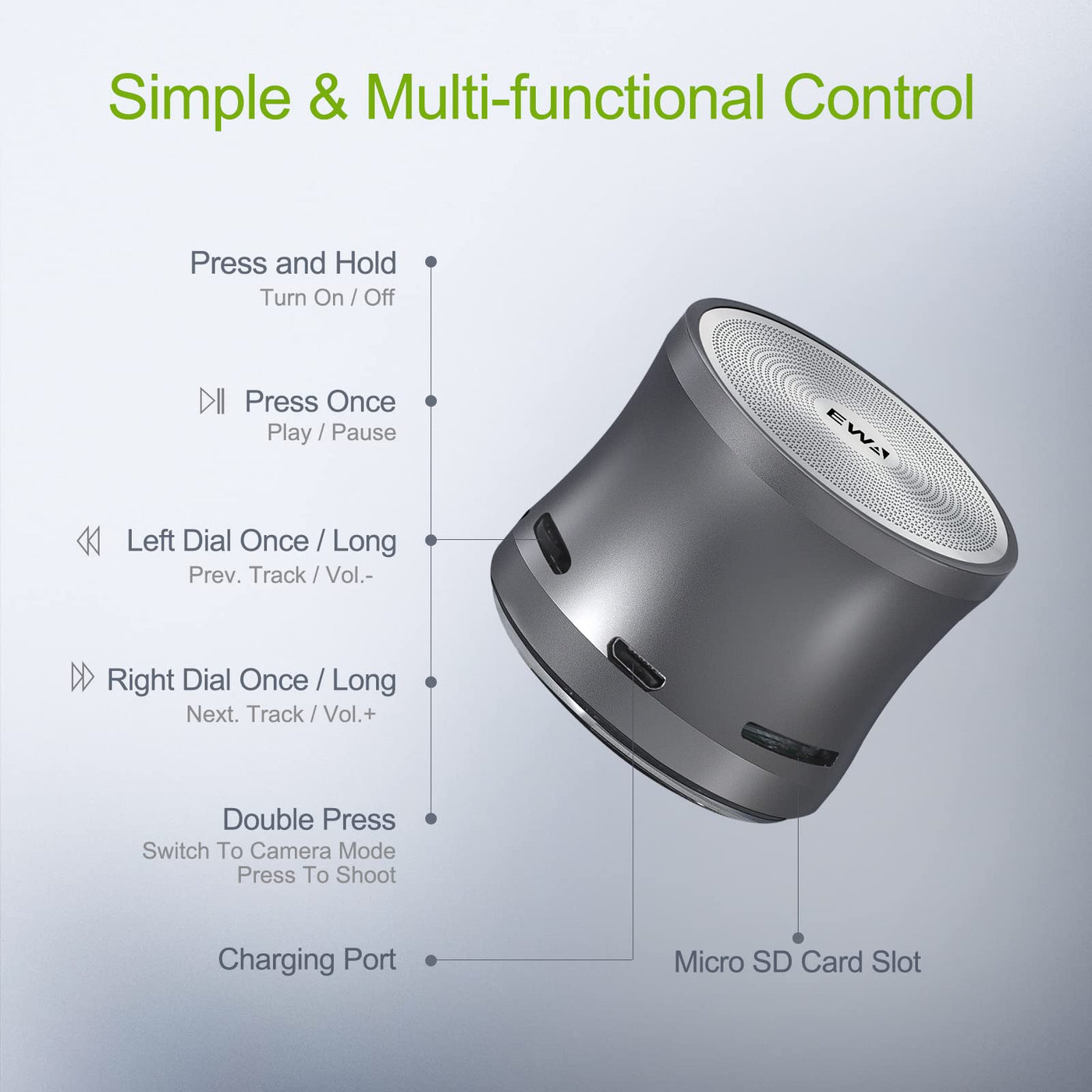 Ewa A109Mini Bluetooth Speaker With Bass Radiator,Enhanced Impactive Bass,Portable Loud Speaker,Perfect Travel Wireless Speaker For Home,Hiking And More (Gray)